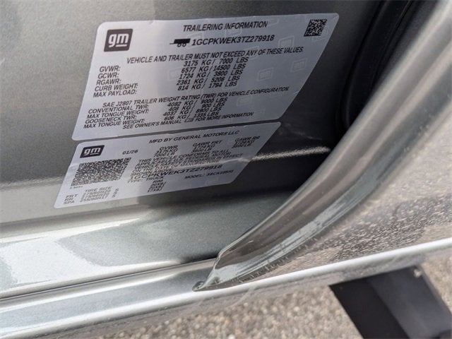 Sterling Gray Metallic 2026 Chevrolet Silverado 1500 RST 4WD 8-Speed Automatic 2.7L I4 Turbocharged DOHC 16V LEV3-SULEV30 310hp 8-Speed Automatic, 4WD, Gideon/Very Dark Atmosphere Cloth, 10-Way Power Driver Seat w/Lumbar, 12.3 Multicolor Reconfigurable Digital Display, 120-Volt Bed Mounted Power Outlet, 120-Volt Interior Power Outlet, 220 Amp Alternator, 3.42 Rear Axle Ratio, 4-Wheel Disc Brakes, 4 Black Round Assist Steps (LPO), 40/20/40 Front Split-Bench Seat, 6 Speakers, 6-Speaker Audio System, ABS brakes, Air Conditioning, All-Star Edition, All-Weather Floor Liner (LPO), Alloy wheels, AM/FM radio: SiriusXM with 360L, Apple CarPlay/Android Auto, Auto High-beam Headlights, Auto-Locking Rear Differential, Automatic Emergency Braking, Automatic temperature control, Bluetooth® For Phone, Brake assist, Bumpers: body-color, Chevytec Spray-On Black Bedliner, Cloth Seat Trim, Color-Keyed Carpeting Floor Covering, Compass, Convenience Package, Deep-Tinted Glass, Delay-off headlights, Driver door bin, Driver vanity mirror, Dual front impact airbags, Dual front side impact airbags, Dual Rear USB Ports (Charge Only), Dual-Zone Automatic Climate Control, Electric Rear-Window Defogger, Electronic Cruise Control, Electronic Stability Control, Emergency communication system: OnStar, EZ Lift Power Lock & Release Tailgate, Following Distance Indicator, Forward Collision Alert, Front anti-roll bar, Front Center Armrest w/Storage, Front dual zone A/C, Front fog lights, Front Frame-Mounted Black Recovery Hooks, Front LED Fog Lamps, Front Pedestrian Braking, Front reading lights, Front Rubberized Vinyl Floor Mats, Front wheel independent suspension, Fully automatic headlights, HD Rear Vision Camera, Heated door mirrors, Heated Driver & Front Outboard Passenger Seats, Heated front seats, Heated Power-Adjustable Outside Mirrors, Heated Steering Wheel, Heated steering wheel, High Capacity Suspension Package, High Gloss Black Mirror Caps, Hitch Guidance, Illuminated entry, Inside Rear-View Mirror w/Tilt, Integrated Trailer Brake Controller, IntelliBeam Automatic High Beam On/Off, Keyless Open & Start, Lane Keep Assist w/Lane Departure Warning, LED Cargo Area Lighting, Low tire pressure warning, Manual Tilt/Telescoping Steering Column, Occupant sensing airbag, OnStar Services Capable, Outside temperature display, Overhead airbag, Overhead console, Panic alarm, Passenger door bin, Passenger vanity mirror, Power door mirrors, Power driver seat, Power Front Windows w/Driver Express Up/Down, Power Front Windows w/Passenger Express Down, Power Rear Windows w/Express Down, Power steering, Power windows, Preferred Equipment Group 1SP, Premium audio system: Chevrolet Infotainment 3 Premium, Radio data system, Radio: Chevrolet Infotainment 3 Premium System, Rear 60/40 Folding Bench Seat (Folds Up), Rear reading lights, Rear Rubberized-Vinyl Floor Mats, Rear step bumper, Rear window defroster, Remote keyless entry, Remote Vehicle Starter System, RST Select Package, Security system, Single Outlet Exhaust, SiriusXM w/360L Trial Subscription, Speed control, Speed-sensing steering, Split folding rear seat, Standard Suspension Package, Standard Tailgate, Steering Wheel Audio Controls, Steering wheel mounted audio controls, Tachometer, Teen Driver, Telescoping steering wheel, Theft Deterrent System (Unauthorized Entry), Tilt steering wheel, Tire Pressure Monitoring System, Traction control, Trailering Package, Trip computer, Variably intermittent wipers, Voltmeter, Wheels: 18 x 8.5 Bright Silver Painted Aluminum, Wheels: 20 x 9 High Gloss Black Painted Alum, Wi-Fi Hot Spot Capable, Wrapped Steering Wheel, 8-Speed Automatic, 4WD, Gideon/Very Dark Atmosphere Cloth.