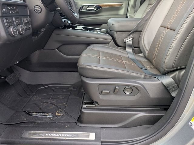 Sterling Gray Metallic 2026 Chevrolet Suburban High Country 4WD 10-Speed Automatic with Overdrive EcoTec3 6.2L V8 2-Speed Active Electronic AutoTrac Transfer Case, 3rd Row All-Weather Floor Liners, Advanced Security Package, Advanced Trailering Package, Air Ride Adaptive Suspension, All-Weather Cargo Mat, AutoSense Hands-Free Power Liftgate, Black Illuminated Front Bowtie Emblem, Blind Zone Steering Assist with Trailering, Dual-Pane Power Panoramic Sunroof, Extra Capacity Cooling System, First and Second Rows Premium Floor Liners, Glass Breakage Sensor, High Country Deluxe, Hill Descent Control, Hitch View with Pan/Zoom Image Adjustment, Illuminated Front and Rear Door Sill Plates, Illuminated Liftgate Sill Plate, Illuminated Mirror Chevrolet Emblem, Illumination Package, Integrated Trailer Brake Controller, Max Trailering Package, Navigation system: Google built-in compatibility (select service plan required, terms and limitations apply), Power-Retractable Assist Steps, Premium Liner Protection Package, Rear Seat Media System, Self-Powered Horn Theft-Deterrent Alarm System, Smart Trailer Integration Indicator, Technology & Entertainment Package, Technology Package, Vehicle Inclination Sensor, Vehicle Interior Movement Sensor, 10 Speakers, 15 Diagonal Multi-Color Head-Up Display, 3.23 Rear Axle Ratio, 3rd Row 60/40 Power-Folding Split-Bench, 3rd row seats: split-bench, 4-Way Power Driver Lumbar Seat Adjuster, 4-Way Power Front Passenger Lumbar Seat Adjuster, 4-Wheel Disc Brakes, 8-Way Power Driver Seat Adjuster, 8-Way Power Front Passenger Seat Adjuster, ABS brakes, Adaptive suspension, Air Conditioning, Alloy wheels, AM/FM radio: SiriusXM with 360L, Apple CarPlay/Android Auto, Auto High-beam Headlights, Auto-dimming door mirrors, Auto-dimming Rear-View mirror, Auto-leveling suspension, Automatic temperature control, Bose 10-Speaker Surround with CenterPoint, Brake assist, Bright Front and Rear Door Sill Plates, Bumpers: body-color, Chrome Door Handles with Body-Color Strip, Compass, Delay-off headlights, Driver door bin, Driver vanity mirror, Dual Exhaust System, Dual front impact airbags, Dual front side impact airbags, Electronic Stability Control, Emergency communication system: OnStar Services capable, Exterior Parking Camera Rear, Four wheel independent suspension, Front anti-roll bar, Front Bucket Seats, Front Center Armrest, Front dual zone A/C, Front fog lights, Front LED Fog Lamps, Front reading lights, Fully automatic headlights, Garage door transmitter, Heads-Up Display, Heated 2nd Row Outboard Seats, Heated door mirrors, Heated Driver and Front Passenger Seats, Heated front seats, Heated Power-Adjustable Outside Mirrors, Heated rear seats, Heated Steering Wheel, Heated steering wheel, Illuminated entry, Inside Rearview Auo-Dimming Rear Camera Mirror, Interior Camera, LED Headlamps with LED Daytime Running Lamps, LED Tail Lamps, Low tire pressure warning, Magnetic Ride Control Suspension, Memory seat, Memory Settings, Occupant sensing airbag, Outside temperature display, Overhead airbag, Overhead console, Panic alarm, Passenger door bin, Passenger vanity mirror, Perforated Heated and Ventilated Seats, Perforated Leather Seating Surfaces, Power door mirrors, Power driver seat, Power Liftgate, Power passenger seat, Power Release 2nd Row Bucket Seats, Power steering, Power Tilt and Telescopic Steering Column, Power windows, Power-Sliding Center Floor Console, Radio data system, Radio: 17.7 Diagonal Advanced Color LCD Display, Rain sensing wipers, Rear air conditioning, Rear anti-roll bar, Rear Power Liftgate, Rear reading lights, Rear window defroster, Rear window wiper, Remote keyless entry, Security system, SiriusXM with 360L Trial Subscription, Speed control, Speed-sensing steering, Split folding rear seat, Spoiler, Steering wheel memory, Steering wheel mounted audio controls, Tachometer, Telescoping steering wheel, Tilt steering wheel, Traction control, Trailer Cam