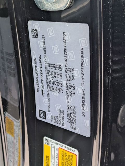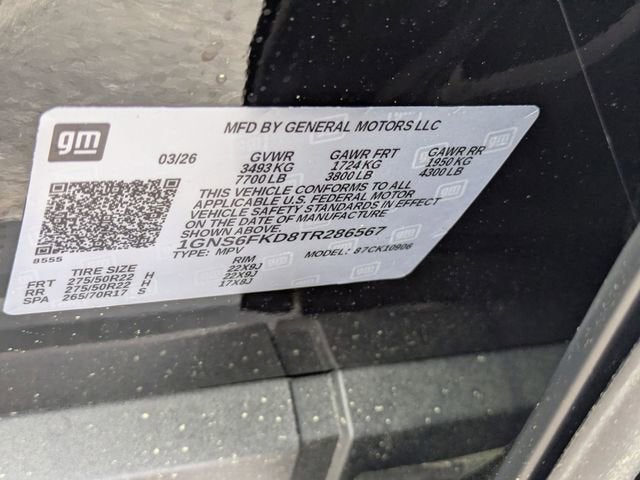 Black 2026 Chevrolet Suburban Premier 4WD 10-Speed Automatic with Overdrive EcoTec3 5.3L V8 2-Speed Active Electronic AutoTrac Transfer Case, Advanced Trailering Package, Blind Zone Steering Assist with Trailering, Dual-Pane Power Panoramic Sunroof, Hill Descent Control, Hitch View with Pan/Zoom Image Adjustment, Integrated Trailer Brake Controller, Max Trailering Package, Navigation system: Google built-in compatibility (select service plan required, terms and limitations apply), Smart Trailer Integration Indicator, Sun and Tow Package, 10 Speakers, 20 x 9 Polished Aluminum Wheels, 3.23 Rear Axle Ratio, 3rd Row 60/40 Power-Folding Split-Bench, 3rd row seats: split-bench, 4-Way Power Driver Lumbar Seat Adjuster, 4-Way Power Front Passenger Lumbar Seat Adjuster, 4-Wheel Disc Brakes, 8-Way Power Driver Seat Adjuster, 8-Way Power Front Passenger Seat Adjuster, ABS brakes, Adaptive suspension, Air Conditioning, Alloy wheels, AM/FM radio: SiriusXM with 360L, Apple CarPlay/Android Auto, Auto High-beam Headlights, Auto-dimming door mirrors, Auto-Dimming Inside Rear-View Mirror, Auto-dimming Rear-View mirror, Auto-leveling suspension, Automatic temperature control, Bose 10-Speaker Surround with CenterPoint, Brake assist, Bright Front and Rear Door Sill Plates, Bumpers: body-color, Chrome Door Handles with Body-Color Strip, Chrome Mirror Caps, Compass, Delay-off headlights, Driver door bin, Driver vanity mirror, Dual Exhaust System, Dual front impact airbags, Dual front side impact airbags, Electronic Stability Control, Emergency communication system: OnStar Services capable, Exterior Parking Camera Rear, Four wheel independent suspension, Front and Rear Black Bowtie Emblems, Front anti-roll bar, Front Bucket Seats, Front Center Armrest, Front dual zone A/C, Front fog lights, Front LED Fog Lamps, Front reading lights, Fully automatic headlights, Garage door transmitter, Heated 2nd Row Outboard Seats, Heated door mirrors, Heated Driver and Front Passenger Seats, Heated front seats, Heated Power-Adjustable Outside Mirrors, Heated rear seats, Heated Steering Wheel, Heated steering wheel, Illuminated entry, Interior Camera, LED Headlamps with LED Daytime Running Lamps, LED Tail Lamps, Low tire pressure warning, Magnetic Ride Control Suspension, Memory seat, Memory Settings, Occupant sensing airbag, Outside temperature display, Overhead airbag, Overhead console, Panic alarm, Passenger door bin, Passenger vanity mirror, Perforated Heated and Ventilated Seats, Perforated Leather Seating Surfaces, Power door mirrors, Power driver seat, Power Liftgate, Power passenger seat, Power Release 2nd Row Bucket Seats, Power steering, Power Tilt and Telescopic Steering Column, Power windows, Power-Sliding Center Floor Console, Radio data system, Radio: 17.7 Diagonal Advanced Color LCD Display, Rain sensing wipers, Rear air conditioning, Rear anti-roll bar, Rear Power Liftgate, Rear reading lights, Rear window defroster, Rear window wiper, Remote keyless entry, Security system, SiriusXM with 360L Trial Subscription, Speed control, Speed-sensing steering, Split folding rear seat, Spoiler, Steering wheel memory, Steering wheel mounted audio controls, Tachometer, Telescoping steering wheel, Tilt steering wheel, Traction control, Trip computer, Turn signal indicator mirrors, Universal Home Remote, Variably intermittent wipers, Ventilated front seats, Voltmeter, Wheel Locks (set of 4), Wheels: 22 x 9 Polished Aluminum, Wireless Apple CarPlay/Wireless Android Auto, Wireless Phone Charging, 2-Speed Active Electronic AutoTrac Transfer Case, Advanced Trailering Package, Blind Zone Steering Assist with Trailering, Dual-Pane Power Panoramic Sunroof, Hill Descent Control, Hitch View with Pan/Zoom Image Adjustment, Integrated Trailer Brake Controller, Max Trailering Package, Navigation system: Google built-in compatibility (select service plan required, terms and limitations apply), Smart Trailer Integration Indicator,