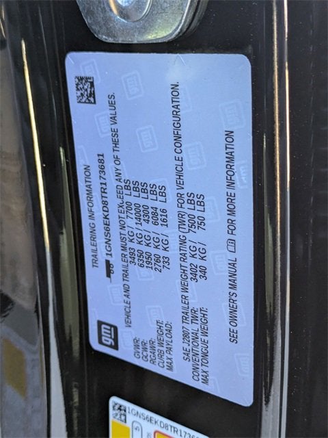 $3,000 off MSRP! 14/19 City/Highway MPG Navigation system: Google built-in compatibility (select service plan required, terms and limitations apply), 2-Way Driver Power Lumbar Seat Adjuster, 2-Way Front Passenger Power Lumbar Seat Adjuster, 2nd Row Power Release 60/40 Split-Folding Bench Seat, 3.23 Rear Axle Ratio, 3rd Row 60/40 Power-Folding Split-Bench, 3rd row seats: split-bench, 4-Wheel Disc Brakes, 6 Speakers, 6-Speaker Audio System, 8-Way Power Driver Seat Adjuster, 8-Way Power Front Passenger Seat Adjuster, ABS brakes, Air Conditioning, Alloy wheels, AM/FM radio: SiriusXM with 360L, Apple CarPlay/Android Auto, Auto High-beam Headlights, Auto-Dimming Inside Rear-View Mirror, Auto-dimming Rear-View mirror, Automatic temperature control, Bose 10-Speaker Surround with CenterPoint, Brake assist, Bright Front and Rear Door Sill Plates, Bumpers: body-color, Comfort Package, Compass, Delay-off headlights, Driver door bin, Driver vanity mirror, Dual Exhaust System, Dual front impact airbags, Dual front side impact airbags, Dual-Pane Power Panoramic Sunroof, Electronic Stability Control, Emergency communication system: OnStar Services capable, Exterior Parking Camera Rear, Four wheel independent suspension, Front anti-roll bar, Front Bucket Seats, Front Center Armrest, Front dual zone A/C, Front fog lights, Front LED Fog Lamps, Front reading lights, Fully automatic headlights, Garage door transmitter, Heated 2nd Row Outboard Seats, Heated door mirrors, Heated Driver and Front Passenger Seats, Heated front seats, Heated Power-Adjustable Outside Mirrors, Heated Steering Wheel, Illuminated entry, Interior Camera, LED Headlamps with LED Daytime Running Lamps, LED Tail Lamps, Low tire pressure warning, Memory seat, Memory Settings, Memory Settings For Driver, Occupant sensing airbag, Outside temperature display, Overhead airbag, Overhead console, Panic alarm, Passenger door bin, Passenger vanity mirror, Perforated Leather Seating Surfaces, Power door mirrors, Power driver seat, Power Liftgate, Power passenger seat, Power Release 2nd Row Bucket Seats, Power steering, Power windows, Premium Smooth Ride Suspension, Radio data system, Radio: 17.7 Diagonal Advanced Color LCD Display, Rain sensing wipers, Rear air conditioning, Rear anti-roll bar, Rear Power Liftgate, Rear reading lights, Rear seat center armrest, Rear window defroster, Rear window wiper, Remote keyless entry, RST Exterior Features, Security system, SiriusXM with 360L Trial Subscription, Speed control, Speed-sensing steering, Split folding rear seat, Spoiler, Steering wheel mounted audio controls, Tachometer, Telescoping steering wheel, Tilt steering wheel, Traction control, Trip computer, Universal Home Remote, Variably intermittent wipers, Voltmeter, Wheel Locks (set of 4), Wheels: 22 x 9 Bright Machined, Wireless Apple CarPlay/Wireless Android Auto, Wireless Phone Charging, Navigation system: Google built-in compatibility (select service plan required, terms and limitations apply).