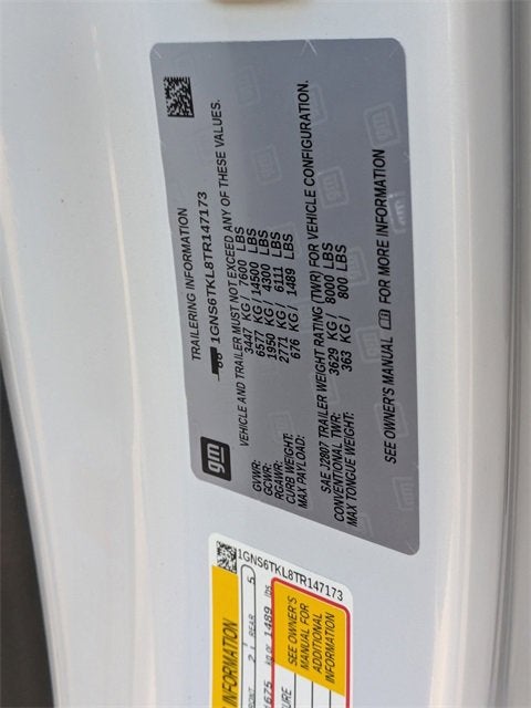 Polar White Tricoat 2026 Chevrolet Tahoe High Country 4WD 10-Speed Automatic with Overdrive EcoTec3 6.2L V8 4WD, Jet Black/Mocha Leather, 15 Diagonal Multi-Color Head-Up Display, 1st and 2nd Row Color-Keyed Carpeted Floor Mats, 2-Speed Active Electronic AutoTrac Transfer Case, 3-Spoke Wrapped Steering Wheel, 3rd Row 60/40 Power-Folding Split-Bench Seat, Advanced Trailering Package, Air Ride Adaptive Suspension, Blind Zone Steering Assist with Trailering, Bose 10-Speaker Centerpoint Surround Audio System Feature, Bright Front and Rear Door Sill Plates, Chrome Door Handles with Body-Color Strip, Color-Keyed Carpeting Floor Covering, Dual Exhaust System, Dual-Pane Power Panoramic Sunroof, Floor Console, Front Bucket Seats, Front LED Fog Lamps, Frontal Driver and Outboard Passenger Airbags, Heated 2nd Row Outboard Seats, Heated Steering Wheel, High Country Deluxe, Hill Descent Control, Hitch View with Pan/Zoom Image Adjustment, Inside Rearview Auo-Dimming Rear Camera Mirror, Integrated Trailer Brake Controller, Interior Camera, Key Card, LED Headlamps with LED Daytime Running Lamps, LED Tail Lamps, License Plate Front Mounting Package, Magnetic Ride Control Suspension, Max Trailering Package, Memory Settings, Navigation system: Google built-in compatibility (select service plan required, terms and limitations apply), Outside Heated Power-Adjustable Mirrors, Power Release 2nd Row Bucket Seats, Power Tilt and Telescopic Steering Column, Power-Retractable Assist Steps, Preferred Equipment Group 3LZ, Rear Power Liftgate, Remote Start, Set of 4 Wheel Locks, SiriusXM with 360L Trial Subscription, Smart Trailer Integration Indicator, Universal Home Remote, Wheels: 22 x 9 Bright Machined Aluminum, Wireless Phone Charging, 10 Speakers, 3.23 Rear Axle Ratio, 3rd row seats: split-bench, 4-Way Power Driver Lumbar Seat Adjuster, 4-Way Power Front Passenger Lumbar Seat Adjuster, 4-Wheel Disc Brakes, 8-Way Power Driver Seat Adjuster, 8-Way Power Front Passenger Seat Adjuster, ABS brakes, Adaptive suspension, Air Conditioning, Alloy wheels, AM/FM radio: SiriusXM with 360L, Apple CarPlay/Android Auto, Auto High-beam Headlights, Auto-dimming door mirrors, Auto-dimming Rear-View mirror, Auto-leveling suspension, Automatic temperature control, Brake assist, Bumpers: body-color, Compass, Delay-off headlights, Driver and Front Passenger Heated and Ventilated Seats, Driver door bin, Driver vanity mirror, Dual front impact airbags, Dual front side impact airbags, Electronic Stability Control, Emergency communication system: OnStar and Chevrolet connected services capable, Exterior Parking Camera Rear, Extra Capacity Cooling System, Four wheel independent suspension, Front anti-roll bar, Front Center Armrest, Front dual zone A/C, Front fog lights, Front reading lights, Fully automatic headlights, Garage door transmitter, Heads-Up Display, Heated door mirrors, Heated Driver and Front Passenger Seats, Heated front seats, Heated rear seats, Heated steering wheel, Illuminated entry, Low tire pressure warning, Memory seat, Occupant sensing airbag, Outside temperature display, Overhead airbag, Overhead console, Panic alarm, Passenger door bin, Passenger vanity mirror, Perforated Leather Seat Trim, Power door mirrors, Power driver seat, Power Liftgate, Power passenger seat, Power steering, Power windows, Premium audio system: Chevrolet Infotainment 3 Premium, Radio data system, Radio: 17.7 Diagonal Advanced Color LCD Display, Rain sensing wipers, Rear air conditioning, Rear anti-roll bar, Rear reading lights, Rear window defroster, Rear window wiper, Remote keyless entry, Security system, Speed control, Speed-sensing steering, Split folding rear seat, Spoiler, Steering wheel memory, Steering wheel mounted audio controls, Super Cruise, Tachometer, Telescoping steering wheel, Tilt steering wheel, Traction control, Trip computer, Turn signal indicator mirrors, Variably intermittent wipers, Ventilated front seats, Vo
