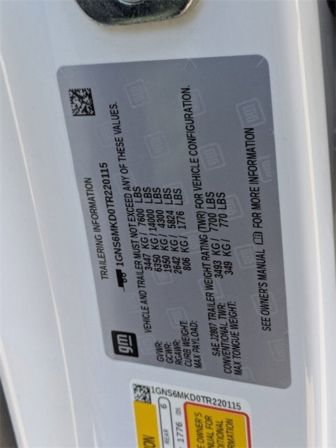 $3,000 off MSRP! 15/19 City/Highway MPG 4WD, Jet Black Cloth, Navigation system: Google built-in compatibility (select service plan required, terms and limitations apply), 1st and 2nd Row Color-Keyed Carpeted Floor Mats, 2-Way Power Driver Lumbar Seat Adjuster, 2-Way Power Front Passenger Lumbar Seat Adjuster, 3-Spoke Wrapped Steering Wheel, 3.23 Rear Axle Ratio, 3rd Row Manual 60/40 Split-Folding Bench Seats, 3rd row seats: split-bench, 4-Wheel Disc Brakes, 6 Speakers, 6-Speaker Audio System Feature, 6-Way Power Front Passenger Seat Adjuster, 8-Way Power Driver Seat Adjuster, ABS brakes, Air Conditioning, Alloy wheels, AM/FM radio: SiriusXM with 360L, Apple CarPlay/Android Auto, Auto High-beam Headlights, Automatic temperature control, Brake assist, Bumpers: body-color, Color-Keyed Carpeting Floor Covering, Compass, Delay-off headlights, Driver door bin, Driver vanity mirror, Dual front impact airbags, Dual front side impact airbags, Electronic Stability Control, Emergency communication system: OnStar and Chevrolet connected services capable, Exterior Parking Camera Rear, Floor Console with Storage Area, Four wheel independent suspension, Front anti-roll bar, Front Bucket Seats, Front Center Armrest, Front dual zone A/C, Front reading lights, Frontal Driver and Outboard Passenger Airbags, Fully automatic headlights, Heated door mirrors, Illuminated entry, Key Card, Low tire pressure warning, Occupant sensing airbag, Outside temperature display, Overhead airbag, Overhead console, Panic alarm, Passenger door bin, Passenger vanity mirror, Power door mirrors, Power driver seat, Power passenger seat, Power steering, Power windows, Premium audio system: Chevrolet Infotainment 3, Premium Cloth Seat Trim, Premium Smooth Ride Suspension, Radio data system, Radio: 17.7 Diagonal Advanced Color LCD Display, Rain sensing wipers, Rear air conditioning, Rear anti-roll bar, Rear reading lights, Rear seat center armrest, Rear window defroster, Rear window wiper, Remote keyless entry, Remote Start, Security system, SiriusXM with 360L Trial Subscription, Speed control, Speed-sensing steering, Split folding rear seat, Spoiler, Steering wheel mounted audio controls, Tachometer, Telescoping steering wheel, Tilt steering wheel, Traction control, Trip computer, USB Ports, Variably intermittent wipers, Voltmeter, Wheels: 18 x 8.5 Bright Silver Painted Aluminum, Wheels: 20 x 9 Machined Aluminum, 4WD, Jet Black Cloth, Navigation system: Google built-in compatibility (select service plan required, terms and limitations apply).