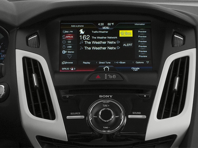 15 Steel Wheels w/Covers, 4 Speakers, ABS brakes, Air Conditioning, AM/FM radio, Brake assist, Bumpers: body-color, CD player, Cloth Front Bucket Seats, Driver door bin, Driver vanity mirror, Dual front impact airbags, Dual front side impact airbags, Electronic Stability Control, Four wheel independent suspension, Front anti-roll bar, Front Bucket Seats, Knee airbag, Low tire pressure warning, Occupant sensing airbag, Overhead airbag, Panic alarm, Passenger door bin, Passenger vanity mirror, Power door mirrors, Power steering, Power windows, Radio data system, Radio: AM/FM Single-CD/MP3-Capable, Rear anti-roll bar, Rear window defroster, Remote keyless entry, Tachometer, Telescoping steering wheel, Tilt steering wheel, Traction control, Variably intermittent wipers. 2014 Ford Focus S FWD 2.0L 4-Cylinder DGI DOHC 26/36 City/Highway MPG 26/36 City/Highway MPG