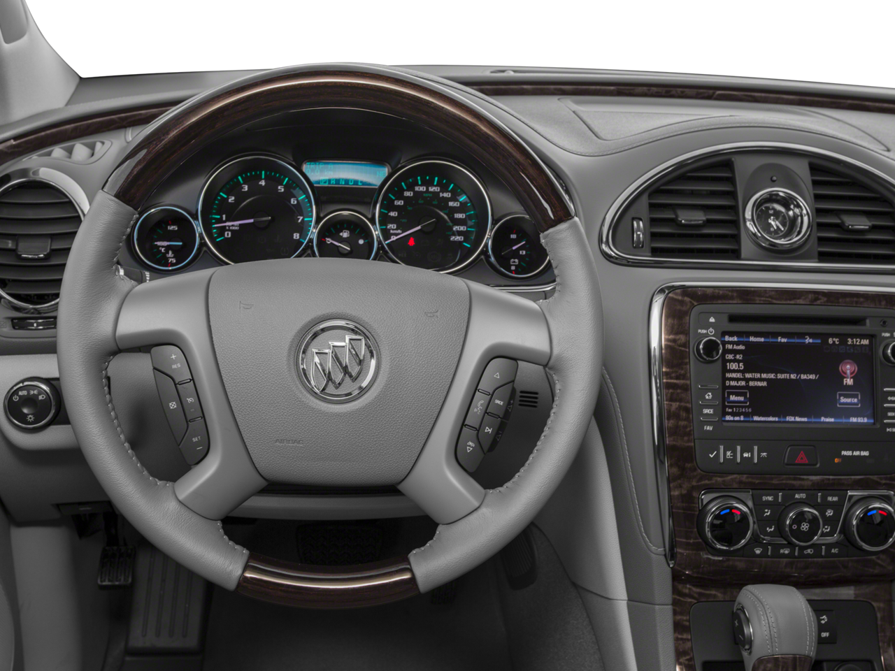 FWD, 3.16 Axle Ratio, 3rd row seats: split-bench, 4-Wheel Disc Brakes, 6 Speakers, 7-Passenger Seating, 8-Way Power Driver Seat Adjuster, 8-Way Power Passenger Seat Adjuster, ABS brakes, Air Conditioning, Alloy wheels, AM/FM radio: SiriusXM, Auto-dimming Rear-View mirror, Automatic temperature control, Bose Performance-Enhanced 10-Speaker System, Brake assist, Bumpers: body-color, CD player, Compass, Delay-off headlights, Driver door bin, Driver vanity mirror, Dual front impact airbags, Dual front side impact airbags, Electronic Stability Control, Emergency communication system: OnStar Guidance, Exterior Parking Camera Rear, Forward Collision Alert & Lane Departure Warning, Four wheel independent suspension, Front anti-roll bar, Front Bucket Seats, Front Center Armrest w/Storage, Front dual zone A/C, Front License Plate Mounting Bracket, Front reading lights, Fully automatic headlights, Garage door transmitter, Heated door mirrors, Heated Driver & Front Passenger Seats, Heated front seats, Heated Steering Wheel, Heated steering wheel, High intensity discharge headlights: Bi-Xenon, Illuminated entry, Leather steering wheel, Low tire pressure warning, Memory seat, Memory Settings, NavTraffic, Occupant sensing airbag, Outside temperature display, Overhead airbag, Panic alarm, Passenger door bin, Passenger vanity mirror, Perforated Leather-Appointed Seat Trim, Power door mirrors, Power driver seat, Power Liftgate, Power passenger seat, Power steering, Power windows, Preferred Equipment Group 1SL, Radio data system, Radio: Color Touch AM/FM/CD w/IntelliLink, Radio: Color Touch AM/FM/CD/Nav w/IntelliLink, Rear air conditioning, Rear anti-roll bar, Rear Audio System Controls, Rear Parking Sensors, Rear reading lights, Rear window defroster, Rear window wiper, Remote keyless entry, Roof rack: rails only, Security system, Side Blind Zone Alert w/Cross Traffic Alert, SiriusXM Satellite Radio, Speed control, Speed-sensing steering, Spoiler, Steering wheel mounted audio controls, Tachometer, Telescoping steering wheel, Tilt steering wheel, Traction control, Trip computer, Turn signal indicator mirrors, Variably intermittent wipers, Voltmeter, Wheels: 19 10-Spoke Aluminum, Wheels: 19 Chrome-Clad Cast Aluminum, FWD. Summit White 2017 Buick Enclave Leather Group FWD 6-Speed Automatic Electronic with Overdrive 3.6L V6 SIDI VVT 15/22 City/Highway MPG