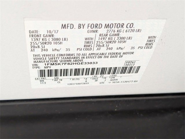 White Platinum 2017 Ford Explorer Limited FWD 6-Speed Automatic with Select-Shift 3.5L V6 Ti-VCT