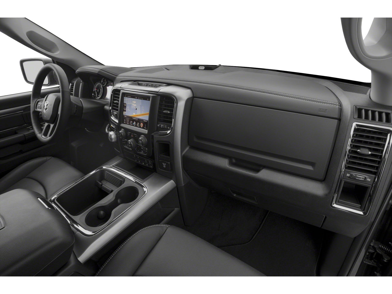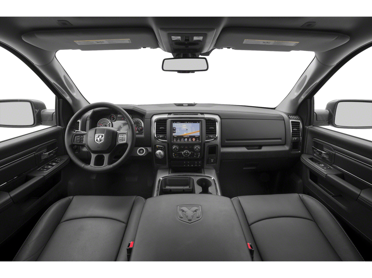 Well equipped with: Big Horn Regional Package, Black Appearance Package (Black Headlamp Bezels, Black Painted Honeycomb Grille, Black Ram Head Tailgate Badge, Body Color Door Handles, Flat Black Ram 1500 Badge, Painted Front Bumper, Painted Rear Bumper, and Semi-Gloss Black Hub), Protection Group (Tow Hooks), Quick Order Package 28S Big Horn (1-Yr SiriusXM Guardian Trial, 115V Auxiliary Power Outlet, 40/20/40 Split Bench Seat, 8.4 Touchscreen Display, Air Conditioning ATC w/Dual Zone Control, Apple CarPlay, Audio Jack Input for Mobile Devices, Auto-Dimming Exterior Mirrors, Auto-Dimming Rear-View Mirror, Big Horn Badge, Bright/Bright Billets Grille, Charge Only Remote USB Port, Dual Rear Exhaust w/Bright Tips, Electric Shift-On-Demand Transfer Case, Electroluminescent Instrument Cluster, Exterior Mirrors Courtesy Lamps, Exterior Mirrors w/Supplemental Signals, Folding Flat Load Floor Storage, Front Armrest w/3 Cupholders, Front Center Seat Cushion Storage, Front Fog Lamps, Glove Box Lamp, Google Android Auto, GPS Antenna Input, HD Radio, Integrated Voice Command w/Bluetooth®, Leather Wrapped Steering Wheel, LED Bed Lighting, Media Hub (2 USB, AUX), Overhead Console w/Garage Door Opener, ParkSense Front/Rear Park Assist System, ParkSense Rear Park Assist System, Power 10-Way Driver Seat, Power Heated Fold-Away Mirrors, Power Lumbar Adjust, Power-Folding Mirrors, Premium Cloth 40/20/40 Bench Seat, Radio: Uconnect 4C w/8.4 Display, Rear 60/40 Split Folding Seat, Rear Dome w/On/Off Switch Lamp, Rear Floor Mats, Rear Power Sliding Window, Remote Start System, Remote USB Port, Security Alarm, SiriusXM Satellite Radio, Steering Wheel Mounted Audio Controls, Storage Tray, Sun Visors w/Illuminated Vanity Mirrors, Universal Garage Door Opener, USB Host Flip, and Wheels: 20 x 8 Aluminum Chrome Clad), 4-Wheel Disc Brakes, 5-Year SiriusXM Traffic Service, 5-Year SiriusXM Travel Link Service, 6 Speakers, ABS brakes, Active Grille Shutters, Air Conditioning, Alloy wheels, AM/FM radio: SiriusXM, Anti-Spin Differential Rear Axle, Black Exterior Mirrors, Brake assist, Bumpers: chrome, Center Hub, Class IV Receiver Hitch (DISC), Compass, Delay-off headlights, Driver door bin, Dual front impact airbags, Dual front side impact airbags, Electronic Shift, Electronic Stability Control, Exterior Mirrors w/Heating Element, Front anti-roll bar, Front Center Armrest w/Storage, Front reading lights, Front wheel independent suspension, Fully automatic headlights, GPS Navigation, Heated door mirrors, Illuminated entry, Low tire pressure warning, Occupant sensing airbag, Outside temperature display, Overhead airbag, Overhead console, Panic alarm, ParkView Rear Back-Up Camera, Passenger door bin, Passenger vanity mirror, Power door mirrors, Power steering, Power windows, Radio data system, Radio: Uconnect 4C Nav w/8.4 Display, Rear anti-roll bar, Rear seat center armrest, Rear step bumper, Remote keyless entry, Single Disc Remote CD Player, SiriusXM Traffic Plus, SiriusXM Travel Link, Speed control, Spray In Bedliner (DISC), Tachometer, Tilt steering wheel, Tip Start, Traction control, Trailer Brake Control, Trip computer, Variably intermittent wipers, Voltmeter, and Wheels: 20 x 8 Semi-Gloss Black Aluminum (DISC)