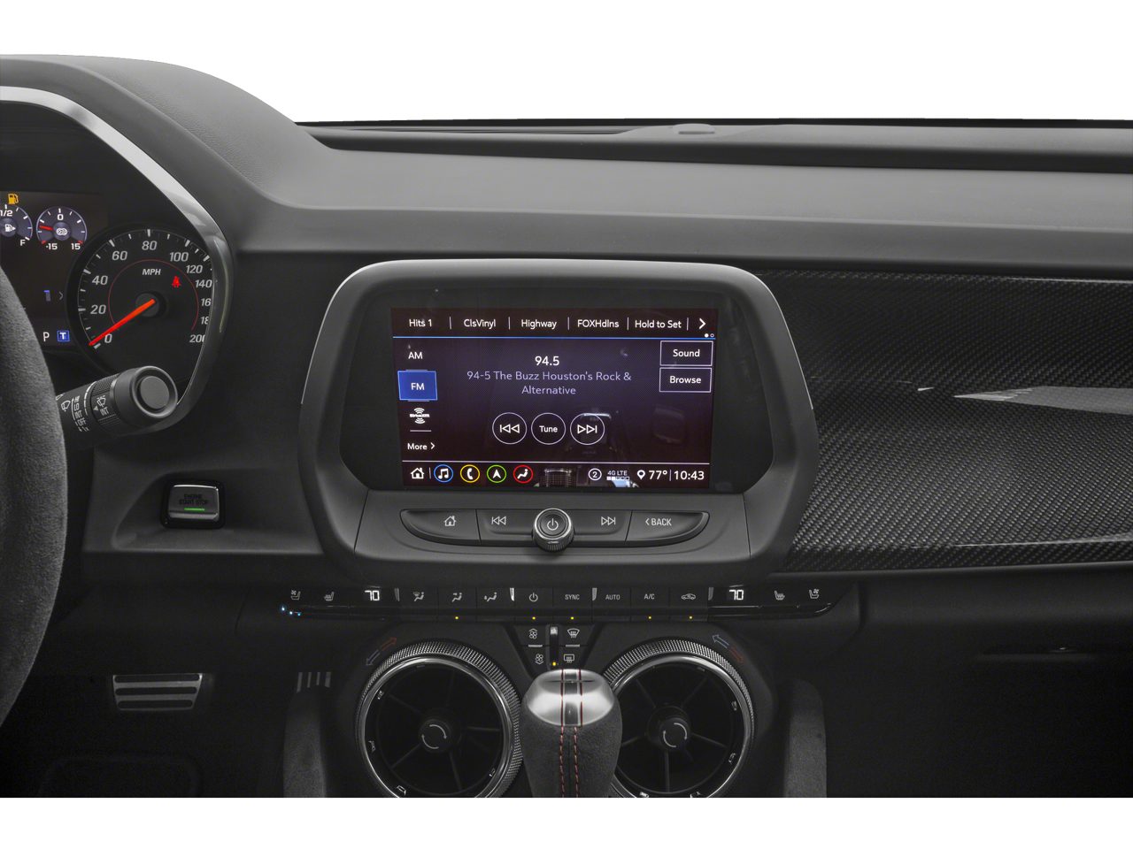 2.85 Rear Axle Ratio, 4-Wheel Disc Brakes, 6-Way Power Front Passenger Seat Adjuster, 8-Way Power Driver Seat Adjuster, 9 Speakers, ABS brakes, Adaptive suspension, Air Conditioning, All-Weather Cargo Mat w/Camaro Logo (LPO), Alloy wheels, AM/FM radio: SiriusXM, Apple CarPlay/Android Auto, Auto-dimming door mirrors, Auto-Dimming Inside Rear-View Mirror, Automatic temperature control, Bluetooth® For Phone, Bose Premium 9-Speaker Audio System Feature, Brake assist, Bumpers: body-color, Compass, Delay-off headlights, Driver door bin, Driver vanity mirror, Dual front impact airbags, Dual front side impact airbags, Electronic Stability Control, Exterior Parking Camera Rear, Fixed Rear Seat, Forward Collision Alert Delete, Four wheel independent suspension, Front anti-roll bar, Front Bucket Seats, Front Center Armrest, Front dual zone A/C, Front License Plate Bracket, Front reading lights, Fully automatic headlights, Heads-Up Display, Heated door mirrors, Heated Driver & Front Passenger Seats, Heated front seats, Heated steering wheel, High-Intensity Discharge Headlights, Illuminated entry, Knee airbag, Leather-Trimmed Seat Trim w/Sueded Inserts, Low tire pressure warning, Low-Gloss Black Outside Rearview Mirrors, Memory seat, Occupant sensing airbag, Outside temperature display, Overhead airbag, Paddle-Shift Manual Controls, Panic alarm, Passenger door bin, Passenger vanity mirror, Performance Data & Video Recorder, Performance Suspension w/DSSV Dampers, Power door mirrors, Power driver seat, Power passenger seat, Power steering, Power windows, Preferred Equipment Group 1SE, Premium audio system: Chevrolet Infotainment System, Radio data system, Radio: Chevrolet Infotainment 3 Plus System, Radio: Chevrolet Infotainment 3 Premium System, Rear anti-roll bar, Rear Camera Mirror Delete, Rear window defroster, RECARO Performance Front Bucket Seats, Red Calipers, Remote keyless entry, Remote Vehicle Starter System, Satin Black Hood Wrap, Security system, SiriusXM Radio, Speed control, Speed-sensing steering, Spoiler, Sport steering wheel, Steering wheel mounted audio controls, Tachometer, Telescoping steering wheel, Tilt steering wheel, Traction control, Trip computer, Variably intermittent wipers, Ventilated Driver & Front Passenger Seats, Ventilated front seats, Visible Carbon Fiber Weave Hood Insert, Visible Weave Carbon Fiber Rear Spoiler, Voltmeter, Wheel Locks, Wheels: 19 x 11 Fr & 19 x 12 Rr Low Gloss Blk, Wheels: 20 x 10 Fr & 20 x 11 Rr Dark Graphite, ZL1 1LE Extreme Track Performance Package. Summit White 2019 Chevrolet Camaro ZL1 RWD 10-Speed Automatic 6.2L V8 Supercharged 13/21 City/Highway MPG