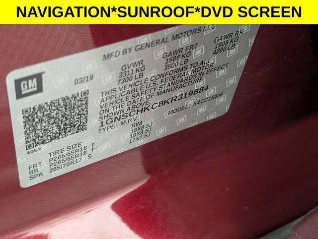 Elevate your driving experience with this stunning 2019 Chevrolet Suburban LT. This full-size SUV offers unparalleled versatility, impressive capability, and a wealth of premium features that will elevate your daily commute and weekend adventures.- SAVE MORE WHEN YOU TRADE WITH HIESTER CHEVROLET!- FAST AND EASY FINANCING- PASSED OUR RIGOROUS SERVICE INSPECTION- Siren Red Tintcoat exterior- Sun, Entertainment and Destinations Package- Luxury Package- Bose Premium Audio System- Hands-Free Power Liftgate- Memory Settings- Power Tilt & Telescoping Steering Column- Heated Leather Wrapped Steering Wheel- Rear Cross Traffic Alert- Rear Park Assist with Audible Warning- AM/FM Stereo with Navigation- Front and Rear Park Assist- Passive Entry System- Power Tilt-Sliding Sunroof- Rear Seat Entertainment SystemPowered by the robust EcoTec3 5.3L V8 Flex Fuel engine, this Suburban LT delivers impressive performance and efficiency, with 15 MPG in the city and 22 MPG on the highway. The 6-speed automatic transmission with overdrive ensures a smooth and responsive driving experience, while the rear-wheel-drive configuration provides confident handling and control.The Suburban's spacious interior is designed with your comfort and convenience in mind. The Luxury Package adds a host of premium features, including heated second-row seats, a heated steering wheel, a hands-free power liftgate, and a power-folding third-row seat. The Sun, Entertainment and Destinations Package enhances your driving experience with a panoramic sunroof, a rear-seat entertainment system, and an 8-inch touchscreen navigation system.Safety is also a top priority, with features like Forward Collision Alert, Lane Keep Assist with Lane Departure Warning, and Rear Cross Traffic Alert keeping you and your passengers secure on the road. The Suburban's impressive towing capacity and available trailering equipment make it the perfect companion for your outdoor adventures.Experience the unrivaled versatility, capability, and luxury of the 2019 Chevrolet Suburban LT. Visit Hiester Chevrolet today and let us help you discover the perfect vehicle to elevate your driving experience.