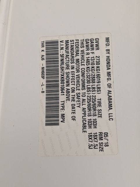 3rd row seats: split-bench, 4-Wheel Disc Brakes, 4.33 Axle Ratio, 7 Speakers, A/V remote: CabinControl, ABS brakes, Air Conditioning, Alloy wheels, AM/FM radio: SiriusXM, Anti-whiplash front head restraints, Apple CarPlay/Android Auto, Auto High-beam Headlights, Auto-dimming Rear-View mirror, Automatic temperature control, Blind Spot Information (BSI) System warning, Brake assist, Bumpers: body-color, Delay-off headlights, Driver door bin, Driver vanity mirror, Driver's Seat Mounted Armrest, Dual front impact airbags, Dual front side impact airbags, Electronic Stability Control, Emergency communication system: HondaLink, Exterior Parking Camera Rear, Forward collision: Collision Mitigation Braking System (CMBS) + FCW mitigation, Four wheel independent suspension, Front anti-roll bar, Front Bucket Seats, Front dual zone A/C, Front fog lights, Front reading lights, Fully automatic headlights, Garage door transmitter: HomeLink, Heated door mirrors, Heated Front Bucket Seats, Heated front seats, Illuminated entry, Knee airbag, Lane departure: Lane Keeping Assist System (LKAS) active, Leather Seat Trim, Leather steering wheel, Low tire pressure warning, Memory seat, Occupant sensing airbag, Outside temperature display, Overhead airbag, Overhead console, Panic alarm, Passenger door bin, Passenger seat mounted armrest, Passenger vanity mirror, Power door mirrors, Power driver seat, Power Liftgate, Power moonroof, Power passenger seat, Power steering, Power windows, Radio data system, Radio: 160-Watt AM/FM/HD/SiriusXM Audio System, Rear air conditioning, Rear anti-roll bar, Rear reading lights, Rear seat center armrest, Rear window defroster, Rear window wiper, Reclining 3rd row seat, Remote keyless entry, Security system, Speed control, Speed-sensing steering, Speed-Sensitive Wipers, Split folding rear seat, Spoiler, Steering wheel mounted audio controls, Tachometer, Telescoping steering wheel, Tilt steering wheel, Traction control, Trip computer, Turn signal indicator mirrors, Variably intermittent wipers, Wheels: 18 Dark Silver-Painted Alloy. 2019 Honda Odyssey EX-L FWD 9-Speed Automatic 3.5L V6 SOHC i-VTEC 24V 19/28 City/Highway MPG