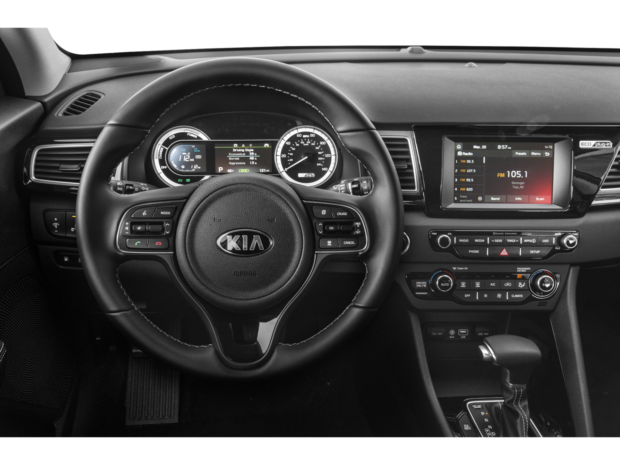 1.6L I4 DGI Hybrid DOHC 16V LEV3-SULEV30, 3.227 Axle Ratio, 4-Wheel Disc Brakes, 6 Speakers, ABS brakes, Air Conditioning, Alloy wheels, AM/FM radio: SiriusXM, Apple CarPlay & Android Auto, Auto-dimming Rear-View mirror, Automatic temperature control, Bodyside moldings, Brake assist, Bumpers: body-color, Carpeted Floor Mats, Cloth & Leather-Trimmed Seats, Delay-off headlights, Driver door bin, Driver vanity mirror, Dual front impact airbags, Dual front side impact airbags, Electronic Stability Control, Emergency communication system: UVO eServices 911 Connect, Exterior Parking Camera Rear, Four wheel independent suspension, Front anti-roll bar, Front Bucket Seats, Front Center Armrest, Front dual zone A/C, Front fog lights, Front reading lights, Fully automatic headlights, Heated door mirrors, Heated Front Bucket Seats, Heated front seats, High-Intensity Discharge Headlights, Illuminated entry, Knee airbag, Leather Shift Knob, Low tire pressure warning, Occupant sensing airbag, Outside temperature display, Overhead airbag, Overhead console, Panic alarm, Passenger door bin, Passenger vanity mirror, Power door mirrors, Power driver seat, Power steering, Power windows, Radio: AM/FM/MP3/SiriusXM Satellite, Rear anti-roll bar, Rear seat center armrest, Rear window defroster, Rear window wiper, Remote keyless entry, Roof rack: rails only, Security system, Speed control, Speed-sensing steering, Split folding rear seat, Spoiler, Steering wheel mounted audio controls, Tachometer, Telescoping steering wheel, Tilt steering wheel, Traction control, Trip computer, Turn signal indicator mirrors, Variably intermittent wipers, Wheels: 16 Alloy w/Full Covers, 1.6L I4 DGI Hybrid DOHC 16V LEV3-SULEV30. Platinum Graphite 2019 Kia Niro Plug-In Hybrid EX FWD 6-Speed Dual Clutch 1.6L I4 DGI Hybrid DOHC 16V LEV3-SULEV30