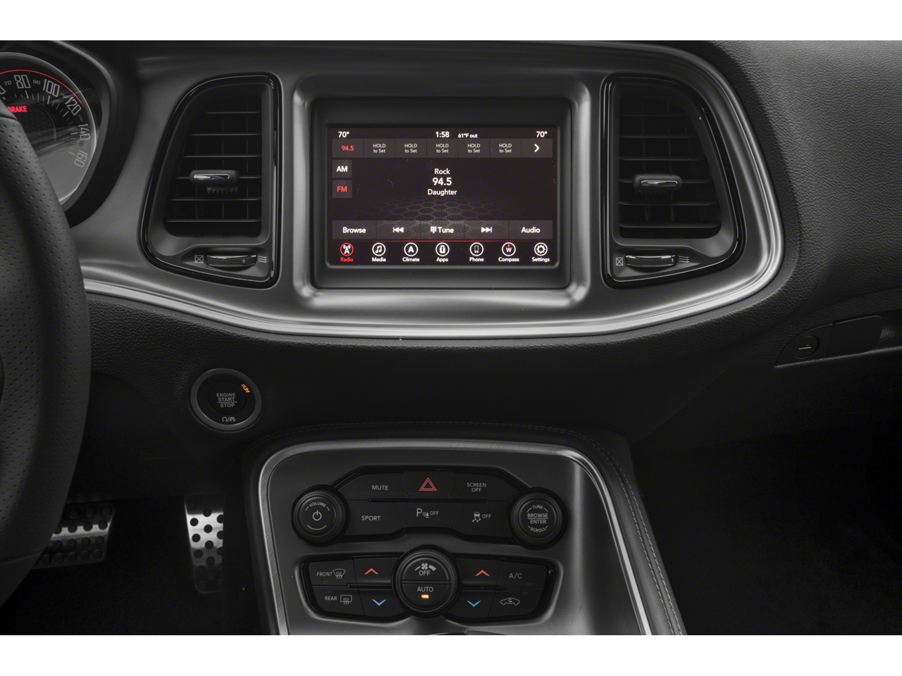 Well equipped with: Quick Order Package 22F R/T 50th Anniversary (8.4 Touchscreen Display, Black Grille w/Bezel, Copper Weave Carbon Fiber Accents, For Details, Visit DriveUconnect.com, For More Info, Call 800-643-2112, HD Radio, Media Hub (2 USB, AUX), Radio: Uconnect 4C w/8.4 Display, Satin Wrap Roof/Decklid, Sepia Accent Stitching, Shark Fin Antenna, SiriusXM Satellite Radio, and Wheels: 20 x 9 50th Gold School), 230MM Rear Axle, 3.90 Rear Axle Ratio, 4-Wheel Disc Brakes, 6 Speakers, ABS brakes, Air Conditioning, Alloy wheels, AM/FM radio, Anti-whiplash front head restraints, Apple CarPlay, Apple CarPlay/Android Auto, Auto-dimming Rear-View mirror, Automatic temperature control, Brake assist, Bumpers: body-color, Compass, Delay-off headlights, Driver door bin, Driver vanity mirror, Dual front impact airbags, Dual front side impact airbags, Electronic Stability Control, Four wheel independent suspension, Front anti-roll bar, Front Bucket Seats, Front Center Armrest, Front dual zone A/C, Front fog lights, Front reading lights, Fully automatic headlights, Garage door transmitter, Google Android Auto, GPS Antenna Input, Heated door mirrors, Houndstooth Cloth Performance Seats, Illuminated entry, Integrated Center Stack Radio, Integrated Voice Command w/Bluetooth®, Leather Shift Knob, Low tire pressure warning, Outside temperature display, Overhead airbag, Overhead console, Panic alarm, ParkView Rear Back-Up Camera, Passenger door bin, Passenger vanity mirror, Performance Steering, Power door mirrors, Power driver seat, Power steering, Power windows, Radio data system, Radio: Uconnect 4 w/7 Display, Rear anti-roll bar, Rear reading lights, Rear seat center armrest, Rear window defroster, Remote keyless entry, Security system, Speed control, Speed-sensing steering, Split folding rear seat, Spoiler, Sport steering wheel, Steering wheel mounted audio controls, Tachometer, Telescoping steering wheel, Tilt steering wheel, Traction control, Trip computer, USB Host Flip, Variably intermittent wipers, and Wheels: 20 x 8 Satin Carbon AluminuM.