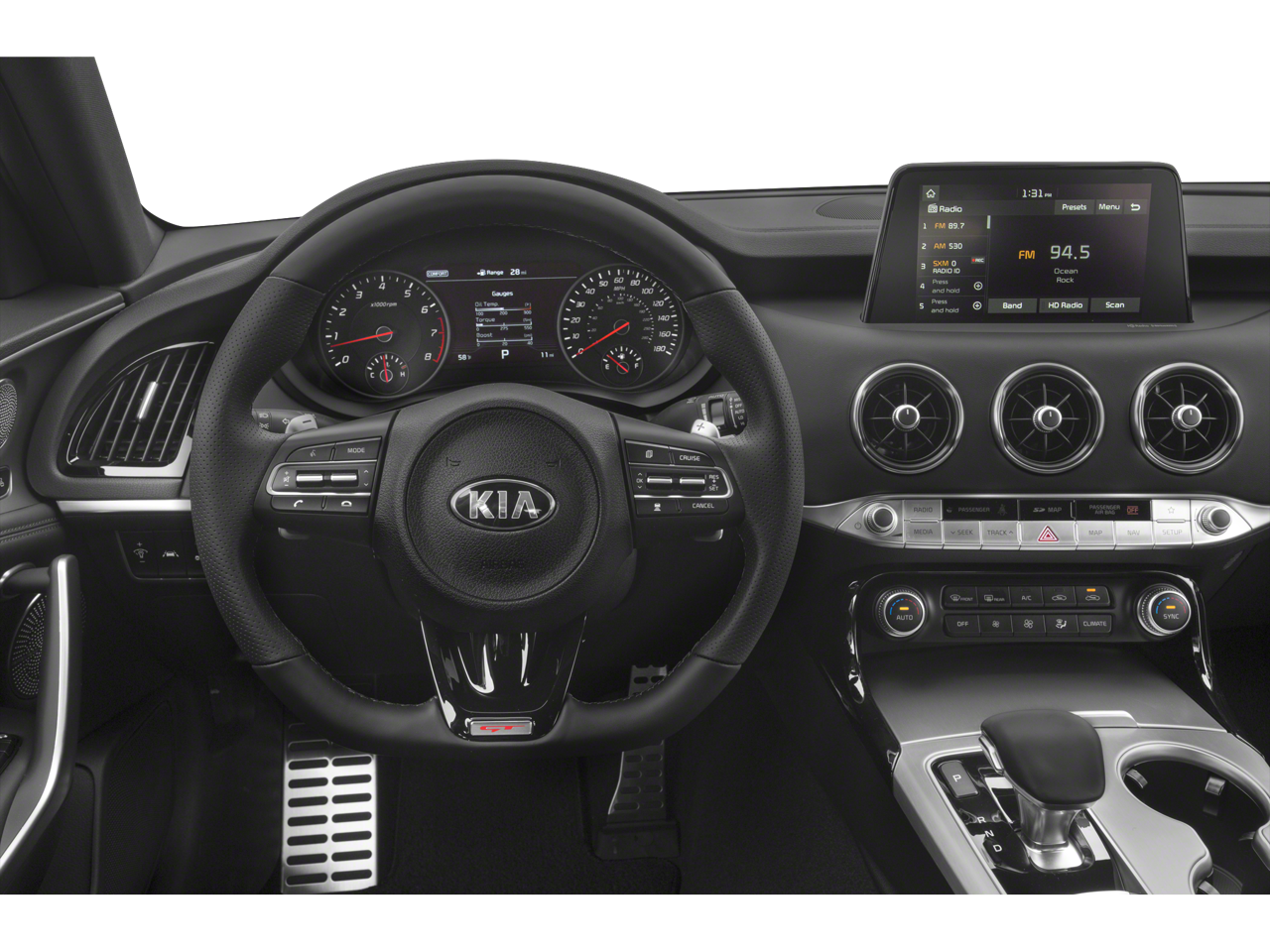 - Radio: AM/FM/MP3/HD/SiriusXM harman/kardon Audio -inc: 720 Watts, navigation system, 8" color touch-screen display, 15 speaker premium surround sound including dual underseat subwoofers, QuantumLogic, ClariFi digital music restoration, UVO eServices infotainment system, support for Android Auto and Apple CarPlay, USB input, Bluetooth® wireless connectivity, wireless phone charger and steering-wheel-mounted controls