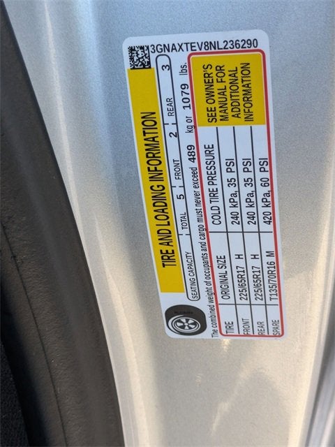 GM CERTIFIED, ONE OWNER ACCIDENT FREE CARFAX, LIFETIME ENGINE GUARANTEE, BALANCE OF FACTORY WARRANTY, 4WD/AWD, FAST AND EASY FINANCING, ***SAVE MORE WHEN YOU TRADE WITH HIESTER CHEVROLET OF LILLINGTON!***, Chevrolet Certified Pre-Owned Certified, AWD, 3-Spoke Leather-Wrapped Steering Wheel, All-Weather Floor Liners (LPO), Driver Convenience Package, Dual Zone Automatic Climate Control, Floor Liner Package (LPO), Heated Driver & Front Passenger Seats, Integrated Cargo Liner (LPO), Preferred Equipment Group 2FL, Rear Power Liftgate, Remote Start, 17 Aluminum Wheels, 2 Rear USB Charging-Only Ports, 2 USB Ports & Auxiliary Input Jack, 2-Way Power Driver Lumbar Control Seat Adjuster, 3.87 Final Drive Axle Ratio, 4-Wheel Disc Brakes, 6 Speaker Audio System Feature, 6 Speakers, 8-Way Power Driver Seat Adjuster, ABS brakes, Air Conditioning, Alloy wheels, AM/FM radio: SiriusXM, Auto High-beam Headlights, Bluetooth® For Phone, Brake assist, Bumpers: body-color, Compass, Delay-off headlights, Driver door bin, Driver vanity mirror, Dual front impact airbags, Dual front side impact airbags, Electronic Stability Control, Emergency communication system: OnStar and Chevrolet connected services capable, Four wheel independent suspension, Front anti-roll bar, Front Bucket Seats, Front Center Armrest, Front Passenger 4-Way Manual Seat Adjuster, Front reading lights, Fully automatic headlights, Heated door mirrors, Illuminated entry, Low tire pressure warning, Occupant sensing airbag, Outside temperature display, Overhead airbag, Overhead console, Panic alarm, Passenger door bin, Passenger vanity mirror, Power door mirrors, Power driver seat, Power steering, Power windows, Premium audio system: Chevrolet Infotainment 3, Premium Cloth Seat Trim, Radio data system, Radio: Chevrolet Infotainment 3 System w/AM/FM, Rear anti-roll bar, Rear reading lights, Rear seat center armrest, Rear window defroster, Rear window wiper, Remote keyless entry, Security system, SiriusXM Radio, Speed control, Speed-sensing steering, Split folding rear seat, Spoiler, Steering wheel mounted audio controls, Tachometer, Telescoping steering wheel, Tilt steering wheel, Traction control, Trip computer, Variably intermittent wipers, Wireless Apple CarPlay/Wireless Android Auto, AWD, 3-Spoke Leather-Wrapped Steering Wheel, All-Weather Floor Liners (LPO), Driver Convenience Package, Dual Zone Automatic Climate Control, Floor Liner Package (LPO), Heated Driver & Front Passenger Seats, Integrated Cargo Liner (LPO), Preferred Equipment Group 2FL, Rear Power Liftgate, Remote Start. Silver Ice Metallic 2022 Chevrolet Equinox LT AWD 6-Speed Automatic Electronic with Overdrive 1.5L DOHC Priced below KBB Fair Purchase Price! 25/30 City/Highway MPG