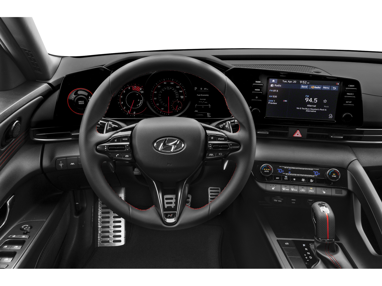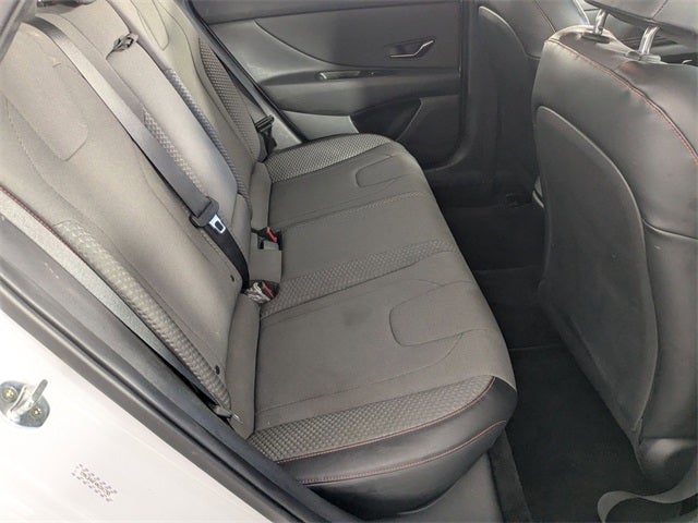 CLEAN CARFAX, ONE OWNER, LOCAL TRADE, BALANCE OF FACTORY WARRANTY, LIFETIME ENGINE GUARANTEE, FAST AND EASY FINANCING, THE NEW PRICE OUTLET, Cargo Block, Cargo Hook, Cargo Net, Cargo Package, Cargo Side Bins, First Aid Kit, Option Group 01, Preferred Accessory Package, Reversible Cargo Tray, 18 x 7.5J Alloy Wheels, 4-Wheel Disc Brakes, 6 Speakers, ABS brakes, Air Conditioning, Alloy wheels, AM/FM radio: SiriusXM, Apple CarPlay & Android Auto, Auto High-beam Headlights, Automatic temperature control, Brake assist, Bumpers: body-color, Carpeted Floor Mats, Combination Cloth & Leather Seating Surfaces, Delay-off headlights, Driver door bin, Driver vanity mirror, Dual front impact airbags, Dual front side impact airbags, Electronic Stability Control, Emergency communication system: Blue Link Connected Car Service (3-year complimentary subscription), Exterior Parking Camera Rear, Four wheel independent suspension, Front anti-roll bar, Front Bucket Seats, Front Center Armrest, Front dual zone A/C, Front reading lights, Fully automatic headlights, Heated door mirrors, Heated front seats, Heated Front Sport Seats, Illuminated entry, Leather Shift Knob, Leather steering wheel, Low tire pressure warning, Occupant sensing airbag, Outside temperature display, Overhead airbag, Overhead console, Panic alarm, Passenger door bin, Passenger vanity mirror, Power door mirrors, Power driver seat, Power moonroof, Power steering, Power windows, Radio: AM/FM/HD/SiriusXM Display Audio, Rear anti-roll bar, Rear seat center armrest, Rear window defroster, Remote keyless entry, Security system, Speed control, Speed-sensing steering, Split folding rear seat, Spoiler, Sport steering wheel, Steering wheel mounted audio controls, Tachometer, Telescoping steering wheel, Tilt steering wheel, Traction control, Trip computer, Variably intermittent wipers, Wheel Locks, Cargo Block, Cargo Hook, Cargo Net, Cargo Package, Cargo Side Bins, First Aid Kit, Option Group 01, Preferred Accessory Package, Reversible Cargo Tray. Ceramic White 2022 Hyundai Elantra N Line FWD 7-Speed Dual Clutch DCT 1.6L 4-Cylinder DOHC 16V 28/36 City/Highway MPG 28/36 City/Highway MPG