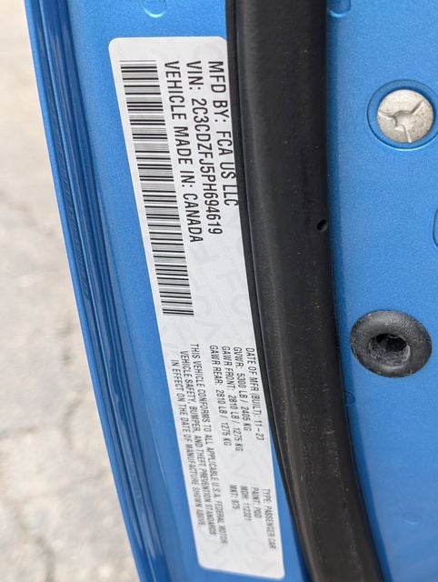 ***FACTORY CHRYSLER CERTIFIED***, CLEAN CARFAX, LOCAL TRADE, BALANCE OF FACTORY WARRANTY, LIFETIME ENGINE GUARANTEE, FAST AND EASY FINANCING, THE NEW PRICE OUTLET, FCA US LLC Certified Pre-Owned Certified, 506 Watt Amplifier, 9 Amplified Speakers w/Subwoofer, Alpine Audio Group w/Subwoofer, Black-Edged Premium Floormats, Exterior Mirrors w/Heating Element, GPS Navigation, Heated Front Seats, Heated Steering Wheel, High-Intensity Discharge Headlamps, Mopar Bright Door Sills, Mopar Interior Appearance Group, MOPAR Premium Floor Mats w/Logo, Plus Package, Power Multi-Function Foldaway Mirrors, Power Tilt/Telescope Steering Column, Premium-Stitched Dash Panel, Quick Order Package 24G R/T Scat Pack, Radio/Driver Seat/Mirrors Memory, Scat Pack Logo Nappa/Alcantara Seat, Surround Sound, Trunk Mat w/Logo, Ventilated Front Seats, 1-Yr SiriusXM Guardian Trial, 4-Wheel Disc Brakes, 4G LTE Wi-Fi Hot Spot, 5-Year SiriusXM Traffic Service, 5-Year SiriusXM Travel Link Service, 6 Speakers, 8.4 Touchscreen Display, ABS brakes, Air Conditioning, All Radio Equipped Vehicles, All VP4R Radios, Alloy wheels, AM/FM radio: SiriusXM, Anti-whiplash front head restraints, Apple CarPlay, Apple CarPlay/Android Auto, Auto-dimming Rear-View mirror, Automatic temperature control, Body Color Exterior Mirrors, Brake assist, Bumpers: body-color, Compass, Compass Gauge, Delay-off headlights, Driver door bin, Driver vanity mirror, Dual front impact airbags, Dual front side impact airbags, Electronic Stability Control, Emergency communication system: SiriusXM Guardian, For Details, Visit DriveUconnect.com, For More Info, Call 800-643-2112, Four wheel independent suspension, Front anti-roll bar, Front Bucket Seats, Front Center Armrest, Front dual zone A/C, Front fog lights, Front reading lights, Fully automatic headlights, Garage door transmitter, Google Android Auto, GPS Antenna Input, HD Radio, Heated door mirrors, Houndstooth Cloth Performance Seats, Illuminated entry, Integrated Center Stack Radio, Integrated Voice Command w/Bluetooth®, Leather Shift Knob, Low tire pressure warning, Manuf Statement of Origin, Media Hub (2 USB, AUX), Outside temperature display, Overhead airbag, Overhead console, Panic alarm, ParkView Rear Back-Up Camera, Passenger door bin, Passenger vanity mirror, Power door mirrors, Power driver seat, Power steering, Power Sunroof, Power windows, Radio data system, Radio: Uconnect 4C Nav w/8.4 Display, Radio: Uconnect 4C w/8.4 Display, Rear anti-roll bar, Rear reading lights, Rear seat center armrest, Rear window defroster, Remote keyless entry, Rhombi 2-Pc Wheel Center Cap, Scat Pack Stripe, Security system, Shark Fin Antenna, SiriusXM Radio Service, SiriusXM Satellite Radio, SiriusXM Traffic Plus, SiriusXM Travel Link, Speed control, Speed-sensing steering, Split folding rear seat, Spoiler, Sport steering wheel, Steering wheel mounted audio controls, Tachometer, Telescoping steering wheel, Tilt steering wheel, Traction control, Trip computer, USB Host Flip, Variably intermittent wipers, Wheels: 20 x 9.0 Lo Gloss Granite Crystal, 506 Watt Amplifier, 9 Amplified Speakers w/Subwoofer, Alpine Audio Group w/Subwoofer, Black-Edged Premium Floormats, Exterior Mirrors w/Heating Element, GPS Navigation, Heated Front Seats, Heated Steering Wheel, High-Intensity Discharge Headlamps, Mopar Bright Door Sills, Mopar Interior Appearance Group, MOPAR Premium Floor Mats w/Logo, Plus Package, Power Multi-Function Foldaway Mirrors, Power Tilt/Telescope Steering Column, Premium-Stitched Dash Panel, Quick Order Package 24G R/T Scat Pack, Radio/Driver Seat/Mirrors Memory, Scat Pack Logo Nappa/Alcantara Seat, Surround Sound, Trunk Mat w/Logo, Ventilated Front Seats. B5 Blue Pearlcoat 2023 Dodge Challenger R/T Scat Pack RWD 8-Speed Automatic SRT HEMI 6.4L V8 MDS Priced below KBB Fair Purchase Price! 15/24 City/Highway MPG Odometer is 10620 miles below market average!