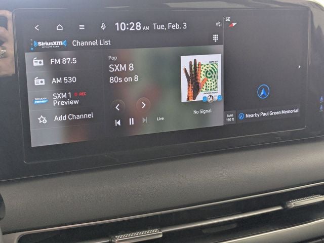 - Radio: AM/FM/MP3 Audio System -inc: 12.3" color touchscreen display, onboard navigation w/traffic flow including incident data via HD Radio (HERE), Over-the-Air (OTA) map updates, SiriusXM, USB, Android Auto and Apple CarPlay, dynamic voice recognition, rear seat quiet mode, Bluetooth® hands-free connectivity w/multiple device connection and Bluelink Connected Car System