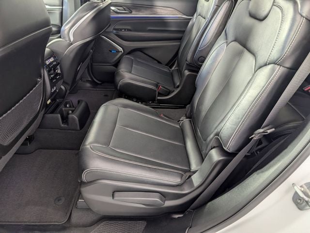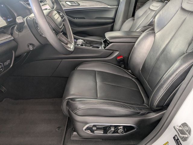 Inside, the Overland trim level pampers you with premium Nappa leather seats, 4-zone automatic temperature control, a wireless charging pad, and a stunning 10.1-inch Uconnect 5 navigation display. The driver and front passenger will enjoy the soothing massage functions, while the available 19-speaker premium audio system provides an immersive listening experience.