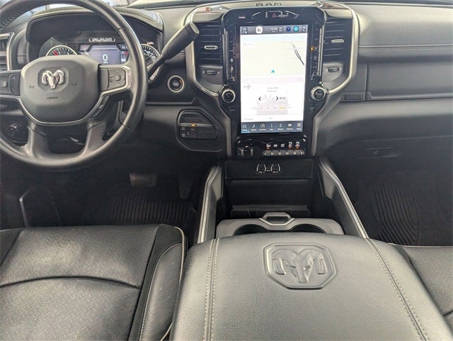 Well equipped with: Bed Utility Group (LED Bed Lighting, MOPAR Deployable Bed Step, and MOPAR Spray In Bedliner), Laramie Level 1 Equipment Group (12 Touchscreen Display, 2nd Row In Floor Storage Bins, 4G LTE Wi-Fi Hot Spot, Alexa Built-In, Apple CarPlay, Auto Adjust In Reverse Exterior Mirrors, Auto Dim Exterior Mirror, Auto High Beam Headlamp Control, Auto Power-Folding Mirrors, Auto-Dimming Exterior Passenger Mirror, Blind Spot & Cross Path Detection, Chrome Exterior Mirrors, Connected Travel & Traffic Services, Connectivity - US/Canada, Disassociated Touchscreen Display, Exterior Mirrors Courtesy Lamps, Exterior Mirrors w/Heating Element, Exterior Mirrors w/Memory, Exterior Mirrors w/Supplemental Signals, Foam Bottle Insert (Door Trim Panel), For Details, Visit DriveUconnect.com, For More Info, Call 800-643-2112, Forward & Reverse Utility Lights, Front LED Fog Lamps, Global Telematics Box Module (TBM), Google Android Auto, GPS Antenna Input, GPS Navigation, HD Radio, Integrated Voice Command w/Bluetooth®, LED Reflector Headlamps, Mirror Running Lights, Off-Road Information Pages, ParkSense Front/Rear Park Assist System, Power Adjust Mirrors, Power Adjustable Convex Aux Mirrors, Power Adjustable Pedals w/Memory, Power Heated Fold Telescopic Mirrors w/Memory, Power Telescoping Mirrors, Radio: Uconnect 5 Nav w/12.0 Display, Radio/Driver Seat/Mirrors/Pedals Memory, Rain Sensitive Windshield Wipers, Rear Power Sliding Window, Rear Window Defroster, Remote Tailgate Release, Selectable Tire Fill Alert, SiriusXM Radio Service, SiriusXM w/360L, and Trailer Tow Pages), Quick Order Package 2HH Laramie, Sport Appearance Package (Black Interior Accents, Body Color Grille Surround, Sport Decal, and Sport Performance Hood), FCA US LLC Certified Pre-Owned Certified, Navigation System, 10 Speakers, 115V Auxiliary Rear Power Outlet, 2 Way Rear Headrest Seat, 20 x 8.0 Polished Aluminum Wheels, 220 Amp Alternator, 3.73 Axle Ratio, 4 Adjustable Cargo Tie-Down Hooks, 4 Way Front Headrests, 4-Wheel Disc Brakes, ABS brakes, Active Noise Control System, Air Conditioning, Alloy wheels, AM/FM radio: SiriusXM with 360L, Anti-Spin Differential Rear Axle, Apple CarPlay/Android Auto, Auto Level Rear Air Suspension, Auto-dimming Rear-View mirror, Automatic temperature control, Brake assist, Bumpers: body-color, Center Hub, Chrome Flat Cab-Length Side Steps, Clearance Lamps, Compass, Delay-off headlights, Driver door bin, Driver vanity mirror, Dual Alternators Rated At 440 Amps, Dual front impact airbags, Dual front side impact airbags, Electronic Stability Control, Electronically Controlled Throttle, Front anti-roll bar, Front Center Armrest w/Storage, Front dual zone A/C, Front reading lights, Front Seat Back Map Pockets, Fully automatic headlights, Garage door transmitter, Heated door mirrors, Heated Front Seats, Heated front seats, Heated Steering Wheel, Heated steering wheel, Illuminated entry, Leather steering wheel, Leather Trim 40/20/40 Bench Seat, Low tire pressure warning, Occupant sensing airbag, Outside temperature display, Overhead airbag, Overhead console, Panic alarm, ParkView Rear Back-Up Camera, Passenger door bin, Passenger vanity mirror, Power 2-Way Driver Lumbar Adjust, Power 2-Way Passenger Lumbar Adjust, Power Adjust 8-Way Driver Seat, Power Adjust 8-Way Front Passenger Seat, Power door mirrors, Power driver seat, Power passenger seat, Power steering, Power windows, Radio data system, Radio: Uconnect 5 Nav w/8.4 Display, RamBox Cargo Management System, Rear 60/40 Folding Seat, Rear anti-roll bar, Rear reading lights, Rear seat center armrest, Rear step bumper, Rear window defroster, Remote keyless entry, Security system, Speed control, Split folding rear seat, Steering wheel mounted audio controls, Tachometer, Tilt steering wheel, Tip Start, Tow Hooks, Traction control, Trip computer, Truck Bed Cargo Divider, Turn signal indicato