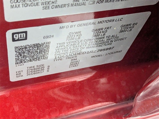 Well equipped with: All Star Edition Plus (Wheels: 20 x 9 Painted Aluminum), Convenience Package (10-Way Power Driver Seat w/Lumbar, 120-Volt Bed Mounted Power Outlet, 120-Volt Interior Power Outlet, Dual Rear USB Ports (Charge Only), Dual-Zone Automatic Climate Control, Heated Driver & Front Outboard Passenger Seats, Heated Steering Wheel, Keyless Open & Start, and Wrapped Steering Wheel), Convenience Package II (Hitch Guidance w/Hitch View, In-Vehicle Trailering System App, Integrated Trailer Brake Controller, Power Sliding Rear Window w/Rear Defogger, and Universal Home Remote), Leather Package (Leather-Appointed Front Seat Trim), Preferred Equipment Group 1LT (12.3 Multicolor Reconfigurable Digital Display, All-Star Edition, Auto-Locking Rear Differential, Bluetooth® For Phone, Chevrolet Connected Access Capable, Chrome Mirror Caps, Color-Keyed Carpeting Floor Covering, Deep-Tinted Glass, Electrical Steering Column Lock, Electronic Cruise Control, EZ Lift Power Lock & Release Tailgate, Front Frame-Mounted Black Recovery Hooks, Front Rubberized Vinyl Floor Mats, HD Rear Vision Camera, Heated Power-Adjustable Outside Mirrors, Inside Rear-View Mirror w/Tilt, LED Cargo Area Lighting, OnStar & Chevrolet Connected Services Capable, Power Front Windows w/Driver Express Up/Down, Power Front Windows w/Passenger Express Down, Power Rear Windows w/Express Down, Rear 60/40 Folding Bench Seat (Folds Up), Rear Rubberized-Vinyl Floor Mats, SiriusXM w/360L, Standard Tailgate, Steering Wheel Audio Controls, and Wi-Fi Hot Spot Capable), Remote Start Package (Electric Rear-Window Defogger, Remote Vehicle Starter System, and Theft Deterrent System (Unauthorized Entry)), Standard Suspension Package, Trailering Package (Hitch Guidance), Up-Level Rear Seat w/Storage Package, Z71 Off-Road Package (Dual Exhaust w/Polished Outlets, Heavy-Duty Air Filter, Hill Descent Control, Off-Road Suspension, and Wheels: 18 x 8.5 Bright Silver Painted Aluminum), 10-Speed Automatic, 4WD, Black Leather, 170 Amp Alternator, 2 USB Data Ports, 220 Amp Alternator, 3.23 Rear Axle Ratio, 4-Wheel Disc Brakes, 40/20/40 Front Split-Bench Seat, 6 Speakers, 6-Speaker Audio System, ABS brakes, Air Conditioning, Alloy wheels, AM/FM radio: SiriusXM with 360L, Auto High-beam Headlights, Automatic Emergency Braking, Automatic temperature control, Auxiliary External Transmission Oil Cooler, Brake assist, Bumpers: chrome, Cloth Seat Trim, Compass, Delay-off headlights, Driver door bin, Driver vanity mirror, Dual front impact airbags, Dual front side impact airbags, Electronic Stability Control, Electronic Transmission Range Selector Shifter, External Engine Oil Cooler, Floor Mounted Center Console, Following Distance Indicator, Forward Collision Alert, Front anti-roll bar, Front Bucket Seats, Front Center Armrest w/Storage, Front dual zone A/C, Front Pedestrian Braking, Front reading lights, Front wheel independent suspension, Fully automatic headlights, Heated door mirrors, Heated front seats, Heated steering wheel, Illuminated entry, IntelliBeam Automatic High Beam On/Off, Lane Keep Assist w/Lane Departure Warning, Low tire pressure warning, Occupant sensing airbag, Outside temperature display, Overhead airbag, Overhead console, Panic alarm, Passenger door bin, Passenger vanity mirror, Power door mirrors, Power driver seat, Power steering, Power windows, Premium audio system: Chevrolet Infotainment 3 Premium, Radio data system, Radio: Chevrolet Infotainment 3 Premium System, Rear reading lights, Rear step bumper, Rear window defroster, Remote keyless entry, Security system, Speed control, Speed-sensing steering, Split folding rear seat, Steering wheel mounted audio controls, Tachometer, Telescoping steering wheel, Tilt steering wheel, Traction control, Trip computer, Variably intermittent wipers, Voltmeter, Wheels: 17 x 8 Bright Silver Painted Aluminum, and Wireless Ch