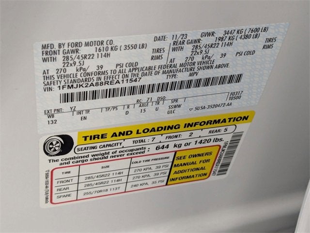 ONE OWNER ACCIDENT FREE CARFAX, LIFETIME ENGINE GUARANTEE, BALANCE OF FACTORY WARRANTY, 4WD/AWD, FAST AND EASY FINANCING, ***SAVE MORE WHEN YOU TRADE WITH HIESTER CHEVROLET OF LILLINGTON!***, Ebony Black Mesh Grille, Equipment Group 302A High Package, Heavy-Duty Independent Suspension, Magnetic-Painted Power Deployable Running Boards, Navigation system: Connected Navigation, Power-Folding Sideview Mirrors w/Autofold, Wheels: 22 12-Spoke Polished Aluminum, 12 Speakers, 3.31 Axle Ratio, 360-Degree Camera w/Split View, 3rd row seats: split-bench, 4-Wheel Disc Brakes, ABS brakes, Adjustable pedals, Advanced Cargo Manager, Air Conditioning, Alloy wheels, AM/FM radio: SiriusXM with 360L, Auto High-beam Headlights, Auto-dimming door mirrors, Auto-dimming Rear-View mirror, Automatic temperature control, Black Roof-Rail Crossbars, Brake assist, Bumpers: body-color, Compass, Connected Navigation, Delay-off headlights, Driver door bin, Driver vanity mirror, Dual front impact airbags, Dual front side impact airbags, Electronic Stability Control, Emergency communication system: SYNC 4 911 Assist, Exterior Parking Camera Rear, Four wheel independent suspension, Front anti-roll bar, Front Bucket Seats, Front Center Armrest, Front dual zone A/C, Front fog lights, Front License Plate Bracket, Front reading lights, Fully automatic headlights, Garage door transmitter, Heated & Ventilated Leather Front Captain's Chairs, Heated door mirrors, Heated front seats, Heated rear seats, Heated steering wheel, Illuminated entry, Leather steering wheel, Low tire pressure warning, Memory seat, Occupant sensing airbag, Outside temperature display, Overhead airbag, Overhead console, Panic alarm, Passenger door bin, Passenger vanity mirror, Pedal memory, Power door mirrors, Power driver seat, Power Liftgate, Power moonroof, Power passenger seat, Power steering, Power windows, Radio data system, Radio: B&O Sound System by Bang & Olufsen, Rain sensing wipers, Rear air conditioning, Rear anti-roll bar, Rear reading lights, Rear window defroster, Rear window wiper, Reclining 3rd row seat, Remote keyless entry, Reverse Brake Assist, Security system, SiriusXM w/360L, Speed control, Speed-sensing steering, Speed-Sensitive Wipers, Split folding rear seat, Spoiler, Steering wheel memory, Steering wheel mounted audio controls, SYNC 4 w/Enhanced Voice Recognition, Tachometer, Telescoping steering wheel, Tilt steering wheel, Traction control, Trip computer, Turn signal indicator mirrors, Variably intermittent wipers, Ventilated front seats, Voltmeter, Wheels: 20 Bright Machined Aluminum, Ebony Black Mesh Grille, Equipment Group 302A High Package, Heavy-Duty Independent Suspension, Magnetic-Painted Power Deployable Running Boards, Navigation system: Connected Navigation, Power-Folding Sideview Mirrors w/Autofold, Wheels: 22 12-Spoke Polished Aluminum. Oxford White 2024 Ford Expedition Max Limited 4WD 10-Speed Automatic EcoBoost 3.5L V6 GTDi DOHC 24V Twin Turbocharged Priced below KBB Fair Purchase Price! 16/22 City/Highway MPG Odometer is 8232 miles below market average!****Thank you for choosing John Hiester Chevrolet of Lillington. Proudly serving Lillington, Pinehurst, Southern Pines, Mamers, Broadway, Pittsboro, Sanford, Angier, Dunn, Erwin, Benson Cary, Apex, Fuquay Varina, Holly Springs, Fayetteville, Raleigh, Durham, and surrounding areas. Keith Tripp and the team are excited and dedicated to making sure every customer has an unparalleled buying experience. Elevate your driving experience today! Ask us about our pre-owned vehicles that come with our Dealership for Life benefits. With over 1000 exceptional vehicles to choose from and the ability to acquire every make and model we are confident you, your family and friends will be 100% satisfied with the service, selection and deals. Many of our customers love the off-site test drives we offer and at home deliveries. ****Please call us at 910-242-3773**** and experience world class customer service. Get off