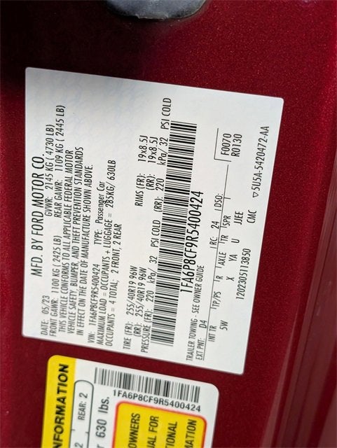 Rapid Red Metallic Tinted Clearcoat 2024 Ford Mustang GT Premium RWD 10-Speed Automatic 5.0L V8 Ti-VCTONE OWNER ACCIDENT FREE CARFAX, LIFETIME ENGINE GUARANTEE, REAR BACKUP CAMERA, Bluetooth® HANDS FREE, NAVIGATION/GPS, LEATHER, PASSED OUR RIGOROUS SERVICE INSPECTION, FAST AND EASY FINANCING, ***SAVE MORE WHEN YOU TRADE WITH HIESTER CHEVROLET!***, Active Anti-Theft System, B&O Sound System by Bang & Olufsen, Connected Built-In Navigation, Equipment Group 401A High Package, Ford Co-Pilot360 Assist+, Illuminated Door-Sill Scuff Plates, Integrated Turn Signals, Leather-Trimmed Bucket Seats w/Color Accents, Locking Center Console, Memory Driver Seat & Mirrors, Pre-Collision Assist w/Automatic Emergency Braking, Security Package, 4-Wheel Disc Brakes, ABS brakes, Air Conditioning, Alloy wheels, AM/FM Stereo, Auto High-beam Headlights, Automatic temperature control, Brake assist, Bumpers: body-color, Compass, Delay-off headlights, Driver door bin, Driver vanity mirror, Dual front impact airbags, Dual front side impact airbags, Electronic Stability Control, Emergency communication system: 911 Assist, Exterior Parking Camera Rear, Four wheel independent suspension, Front anti-roll bar, Front Bucket Seats, Front Center Armrest, Front reading lights, Fully automatic headlights, Illuminated entry, Knee airbag, Leather Shift Knob, Leather steering wheel, Low tire pressure warning, Occupant sensing airbag, Outside temperature display, Overhead airbag, Overhead console, Panic alarm, Passenger door bin, Passenger vanity mirror, Power door mirrors, Power steering, Power windows, Radio data system, Rain sensing wipers, Rear anti-roll bar, Rear Parking Sensors, Rear window defroster, Remote keyless entry, Speed control, Speed-sensing steering, Speed-Sensitive Wipers, Split folding rear seat, Spoiler, Sport steering wheel, Steering wheel mounted audio controls, SYNC 4.0 QNX, Tachometer, Telescoping steering wheel, Tilt steering wheel, Traction control, Trip computer, Variably intermittent wipers, Voltmeter, REAR PARKING SENSORS, Active Anti-Theft System, B&O Sound System by Bang & Olufsen, Connected Built-In Navigation, Equipment Group 401A High Package, Ford Co-Pilot360 Assist+, Illuminated Door-Sill Scuff Plates, Integrated Turn Signals, Leather-Trimmed Bucket Seats w/Color Accents, Locking Center Console, Memory Driver Seat & Mirrors, Pre-Collision Assist w/Automatic Emergency Braking, Security Package.****Thank you for choosing John Hiester Chevrolet. Proudly serving Fuquay Varina, Holly Springs, Cary, Apex, Raleigh, Durham, Fayetteville, Sanford, Pinehurst, Southern Pines, Pittsboro, Lillington, Angier, Dunn, Erwin, Benson, and surrounding areas. The team is excited and dedicated to making sure every customer has an unparalleled buying experience. Elevate your driving experience today! Ask us about our pre-owned vehicles that come with our Dealership for Life benefits. With over 1000 exceptional vehicles to choose from and the ability to acquire every used make and model, we are confident you, your family and friends will be 100% satisfied with the service, selection, and deals. Many of our customers love the off-site test drives we offer and at home deliveries. ****Please call us at 919-346-6312*** and experience world class customer service. Get off your Kiester and come to Hiester! All pricing and details are believed to be accurate, but we do not warrant or guarantee such accuracy. Price excludes Tax, Title and $799 processing fee. See dealer for details.15/23 City/Highway MPG