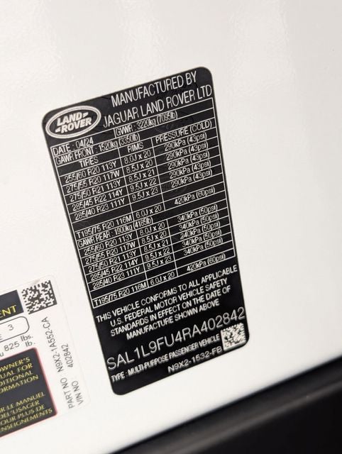 Well equipped with: Hot Climate Pack (Cabin Air Purification Pro, Four-Zone Climate Control, Front Center Console Refrigerator Compartment, Solar Attenuating Windscreen, and Twin-Blade Sunvisors w/Illuminated Vanity Mirrors), Stormer Handling Pack (All Wheel Steering, Configurable Programs, Electronic Active Differential, and Electronic Air Suspension w/Dynamic Response Pro), Navigation system: InControl Navigation Pro, 15 Speakers, 20-Way Elec Heated & Ventilated Fr Seats w/Memory, 3.6 Axle Ratio, 4-Wheel Disc Brakes, A/V remote, ABS brakes, Adaptive suspension, Air Conditioning, Alloy wheels, AM/FM radio: SiriusXM, Apple CarPlay & Android Auto, Auto High-beam Headlights, Auto tilt-away steering wheel, Auto-dimming door mirrors, Auto-dimming Rear-View mirror, Auto-leveling suspension, Automatic temperature control, Block heater, Brake assist, Bumpers: body-color, Child-Seat-Sensing Airbag, Compass, Delay-off headlights, Driver door bin, Driver vanity mirror, Driver's Seat Mounted Armrest, Dual front impact airbags, Dual front side impact airbags, Electronic Stability Control, Emergency communication system: InControl Protect, Exterior Parking Camera Rear, Four wheel independent suspension, Front anti-roll bar, Front Bucket Seats, Front Center Armrest w/Storage, Front dual zone A/C, Front fog lights, Front reading lights, Fully automatic headlights, Garage door transmitter: HomeLink, Headlight cleaning, Heated door mirrors, Heated front seats, Heated rear seats, Heated steering wheel, Illuminated entry, Leather Shift Knob, Leather steering wheel, Low tire pressure warning, Memory seat, Occupant sensing airbag, Outside temperature display, Overhead airbag, Overhead console, Panic alarm, Passenger door bin, Passenger seat mounted armrest, Passenger vanity mirror, Perforated Windsor Leather Seat Trim, Power door mirrors, Power driver seat, Power Liftgate, Power moonroof, Power passenger seat, Power steering, Power windows, Radio data system, Radio: Meridian Sound System, Rain sensing wipers, Rear anti-roll bar, Rear fog lights, Rear reading lights, Rear seat center armrest, Rear window defroster, Rear window wiper, Remote keyless entry, Security system, Speed control, Speed-sensing steering, Speed-Sensitive Wipers, Split folding rear seat, Spoiler, Steering wheel memory, Steering wheel mounted audio controls, Tachometer, Telescoping steering wheel, Tilt steering wheel, Traction control, Trip computer, Turn signal indicator mirrors, Variably intermittent wipers, Ventilated front seats, and Wheels: 21 Satin Dark Grey (Style 5126) ONE OWNER ACCIDENT FREE CARFAX, BALANCE OF FACTORY WARRANTY, 4WD, FAST AND EASY FINANCING, THE NEW PRICE OUTLET, All Wheel Steering, Cabin Air Purification Pro, Configurable Programs, Electronic Active Differential, Electronic Air Suspension w/Dynamic Response Pro, Four-Zone Climate Control, Front Center Console Refrigerator Compartment, Hot Climate Pack, Navigation system: InControl Navigation Pro, Solar Attenuating Windscreen, Stormer Handling Pack, Twin-Blade Sunvisors w/Illuminated Vanity Mirrors, 15 Speakers, 20-Way Elec Heated & Ventilated Fr Seats w/Memory, 3.6 Axle Ratio, 4-Wheel Disc Brakes, A/V remote, ABS brakes, Adaptive suspension, Air Conditioning, Alloy wheels, AM/FM radio: SiriusXM, Apple CarPlay & Android Auto, Auto High-beam Headlights, Auto tilt-away steering wheel, Auto-dimming door mirrors, Auto-dimming Rear-View mirror, Auto-leveling suspension, Automatic temperature control, Block heater, Brake assist, Bumpers: body-color, Child-Seat-Sensing Airbag, Compass, Delay-off headlights, Driver door bin, Driver vanity mirror, Driver's Seat Mounted Armrest, Dual front impact airbags, Dual front side impact airbags, Electronic Stability Control, Emergency communication system: InControl Protect, Exterior Parking Camera Rear, Four wheel independent suspension, Front anti-roll bar, Front Bucket Seats, F