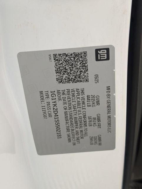 Well equipped with: Battery Protection Package, Carbon Flash Metallic Painted Outside Mirrors (Carbon Flash Metallic-Painted Outside Mirrors), Preferred Equipment Group 1LZ, 10 Speakers, 4-Wheel Disc Brakes, 8-Way Power Driver Seat Adjuster, 8-Way Power Passenger Seat Adjuster, ABS brakes, Adaptive suspension, Air Conditioning, Alloy wheels, AM/FM radio: SiriusXM, Auto High-beam Headlights, Auto-dimming Rear-View mirror, Automatic temperature control, Brake assist, Bumpers: body-color, Ceramic disc brakes: front and rear, Compass, Delay-off headlights, Deleted Mobile Service Plus, Driver door bin, Driver vanity mirror, Dual front impact airbags, Dual front side impact airbags, Electronic Stability Control, Emergency communication system: OnStar and Chevrolet connected services capable, Four wheel independent suspension, Front anti-roll bar, Front Bucket Seats, Front Center Armrest, Front dual zone A/C, Front reading lights, Fully automatic headlights, GT1 Bucket Seats, Heads-Up Display, Heated door mirrors, Illuminated entry, Leather Shift Knob, Leather steering wheel, Low tire pressure warning, Mulan Lthr Seating Surfaces w/Perforated Inserts, Navigation System, Occupant sensing airbag, Outside temperature display, Overhead console, Panic alarm, Passenger door bin, Passenger vanity mirror, Power door mirrors, Power driver seat, Power passenger seat, Power steering, Power windows, Premium audio system: Chevrolet Infotainment 3 Plus, Radio data system, Radio: Chevrolet Infotainment 3 Premium System, Rear anti-roll bar, Rear window defroster, Remote keyless entry, Speed control, Speed-sensing steering, Spoiler, Sport steering wheel, Steering wheel mounted audio controls, Tachometer, Telescoping steering wheel, Tilt steering wheel, Traction control, Trip computer, Turn signal indicator mirrors, Variably intermittent wipers, Voltmeter, Wheels: 20 x 10 Fr/21 x 13 Rr Gloss Black, and Wheels: 20 x 10 Fr/21 x 13 Rr Pearl Nickel.