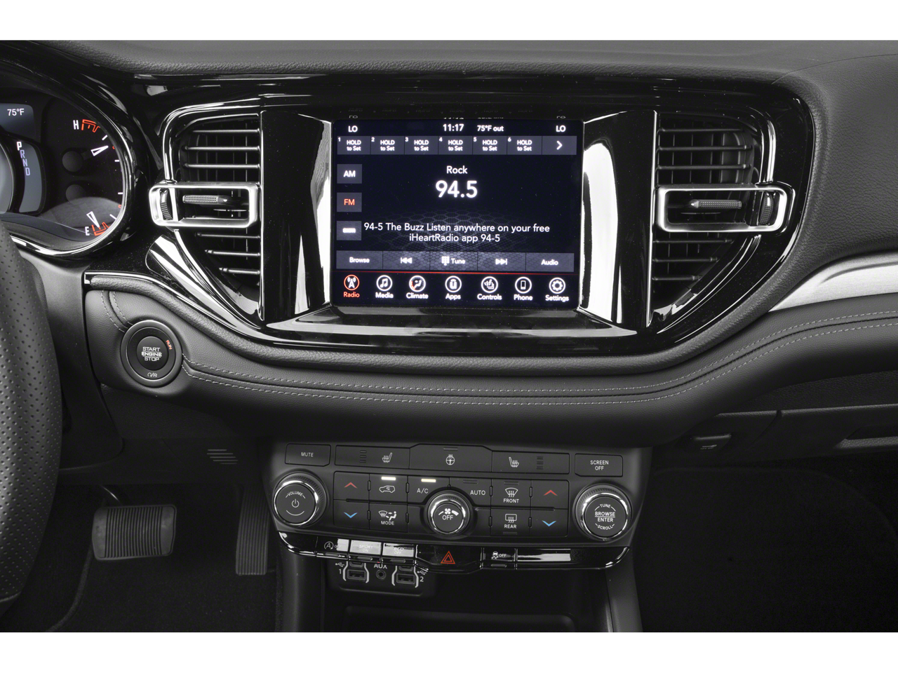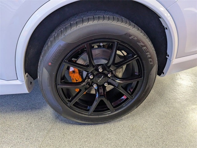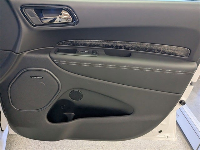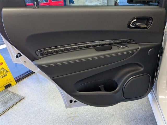 AWD, 19 Harman/Kardon Amplified Speakers with Subwoofer, 2nd Row Fold/Tumble Captain Chairs, 3.70 Rear Axle Ratio, 4-Wheel Disc Brakes, 7 and 4 Pin Wiring Harness, 825 Watt Amplifier, 9 Speakers, ABS brakes, Adaptive Cruise Control with Stop, Adaptive suspension, Advanced Brake Assist, Air Conditioning, Alloy wheels, AM/FM radio: SiriusXM w/360L, Apple CarPlay/Android Auto, Audio memory, Auto High Beam Headlamp Control, Auto-dimming door mirrors, Auto-dimming Rear-View mirror, Automatic temperature control, Blind Spot with Trailer Detection, Brake assist, Bumpers: body-color, Class IV Receiver Hitch, Compass, Delay-off headlights, Driver door bin, Driver vanity mirror, Dual front impact airbags, Dual front side impact airbags, Eclipse Black Exhaust Tips, Electronic Stability Control, Emergency communication system: Dodge Connect, Forged Carbon Fiber Interior Accents, Four wheel independent suspension, Front anti-roll bar, Front Bucket Seats, Front Center Armrest w/Storage, Front dual zone A/C, Front reading lights, Full Speed Forward Collision Warning Plus, Fully automatic headlights, Garage door transmitter, Hammerhead Gray Seat Belts, Heated door mirrors, Heated front seats, Heated rear seats, Heated steering wheel, Illuminated entry, Jailbreak Badge, Knee airbag, Lane Departure Warning Plus, Leather Shift Knob, Leather steering wheel, Leather Trimmed Bucket Seats, Leather/Suede Wrapped Steering Wheel, Low tire pressure warning, Memory seat, MyFlexCare Service Plan, Navigation System, Occupant sensing airbag, Orange Brake Calipers, Orange SRT Hellcat Fender Badges, Outside temperature display, Overhead airbag, Overhead console, Panic alarm, ParkView Rear Back-Up Camera, Passenger door bin, Passenger vanity mirror, Power door mirrors, Power driver seat, Power Liftgate, Power passenger seat, Power steering, Power Sunroof, Power windows, Premium Door Trim Panel, Premium Group, Premium Instrument Panel, Quick Order Package 2XM Jailbreak, Radio data system, Radio: Uconnect 5 Nav with 10.1 Display, Rain sensing wipers, Rear air conditioning, Rear anti-roll bar, Rear reading lights, Rear seat center armrest, Rear window defroster, Rear window wiper, Remote keyless entry, Security system, Speed control, Speed-sensing steering, Speed-Sensitive Wipers, Split folding rear seat, Spoiler, Sport steering wheel, Steering wheel mounted audio controls, Supercharged Sill Plate, Tachometer, Telescoping steering wheel, Tilt steering wheel, Traction control, Trailer Brake Control, Trailer Tow Group IV, Trip computer, Turn signal indicator mirrors, Variably intermittent wipers, Ventilated front seats, Voltmeter, Wheels: 20 x 10 Forged Y-Spoke Satin Black, Wheels: 20 x 10 Machine Face with Dark Pockets, AWD. White Knuckle Clearcoat 2026 Dodge Durango SRT Hellcat AWD 8-Speed Automatic 6.2L Supercharged HEMI V8 SRT 12/17 City/Highway MPG