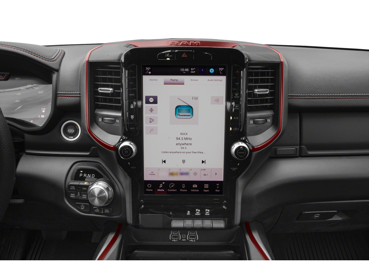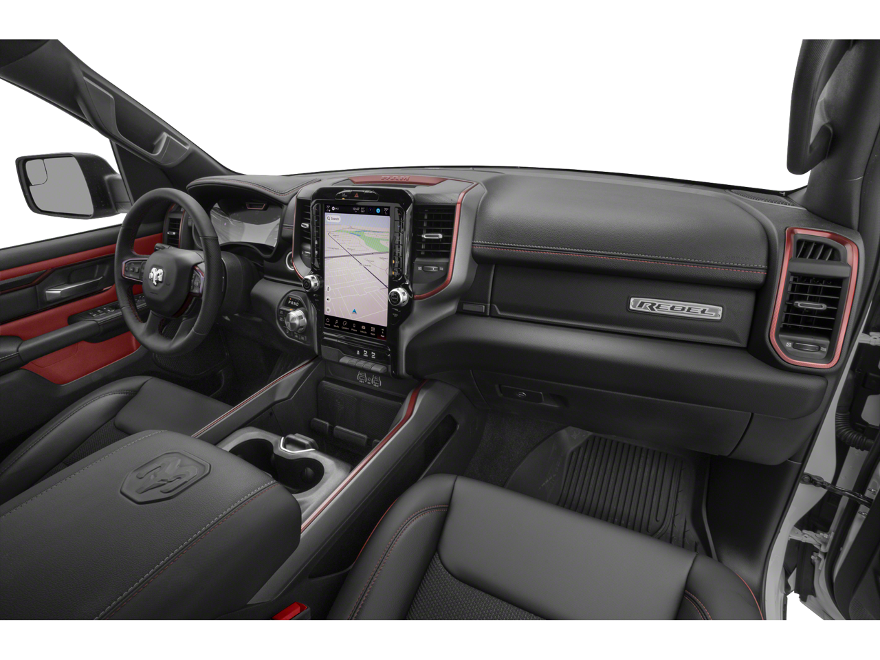 10 Speakers, 3.92 Rear Axle Ratio, 4 Way Front Headrests, 4-Wheel Disc Brakes, 4G LTE Wi-Fi Hot Spot, ABS brakes, Active Noise Control System, Air Conditioning, Alloy wheels, AM/FM radio: SiriusXM with 360L, Apple CarPlay, Apple CarPlay/Android Auto, Auto High-beam Headlights, Auto Power-Folding Mirrors, Auto-Dimming Exterior Driver Mirror, Auto-dimming Rear-View mirror, Automatic temperature control, Black Exterior Mirrors, Black Premium Power Mirrors, Brake assist, Bucket Seats, Cloth/Vinyl Bucket Seats, Compass, Connected Travel and Traffic Services, Connectivity - US/Canada, Convex Wide-Angle Exterior Mirror Insert, Delay-off headlights, Disassociated Touchscreen Display, Driver door bin, Driver vanity mirror, Dual front impact airbags, Dual front side impact airbags, Electronic Stability Control, Exterior Mirrors Courtesy Lamps, Exterior Mirrors with Heating Element, Exterior Mirrors with Supplemental Signals, Front anti-roll bar, Front Bucket Seats, Front Center Armrest w/Storage, Front dual zone A/C, Front fog lights, Front reading lights, Front Seat Back Map Pockets, Front wheel independent suspension, Full Length Upgraded Floor Console, Fully automatic headlights, Garage door transmitter, Global Telematics Box Module, Google Android Auto, GPS Antenna Input, GPS Navigation, HD Radio, Heated door mirrors, Heated Front Seats, Heated front seats, Heated Steering Wheel, Heated steering wheel, Illuminated entry, Integrated Center Stack Radio, Integrated Voice Command with Bluetooth®, Leather steering wheel, Low tire pressure warning, Manual Folding Exterior Mirrors, Navigation System, Occupant sensing airbag, Off-Road Information Pages, Outside temperature display, Overhead airbag, Overhead console, Panic alarm, ParkView Rear Back-Up Camera, Passenger door bin, Passenger vanity mirror, Power 2-Way Driver Lumbar Adjust, Power Adjust 8-Way Driver Seat, Power Adjustable Pedals, Power door mirrors, Power driver seat, Power steering, Power windows, Quick Order Package 21W Rebel, Radio data system, Radio: Uconnect 5 Navigation with 12.0 Display, Rear 60/40 Folding Seat, Rear anti-roll bar, Rear seat center armrest, Rear step bumper, Rear Window Defroster, Rebel Level 1 Equipment Group, Remote keyless entry, Remote Tailgate Release, SiriusXM Radio Service, SiriusXM with 360L, Speed control, Split folding rear seat, Steering wheel mounted audio controls, Tachometer, Telescoping steering wheel, Tilt steering wheel, Traction control, Trip computer, USB Host Flip, Variably intermittent wipers, Voltmeter, Wheels: 18 x 8.0 Painted Mid-Gloss Black, Wireless Charging Pad. Granite Crystal Metallic Clearcoat 2026 Ram 1500 Rebel 4WD 8-Speed Automatic 3.0L I6 18/24 City/Highway MPG