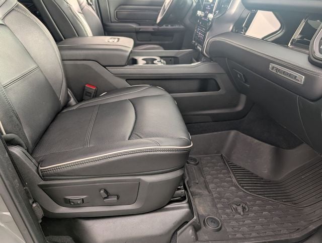 Well equipped with: Quick Order Package 24R Rebel, Rebel Level 2 Equipment Group (115V Auxiliary Rear Power Outlet, 14.4 Touchscreen Display, 17 Speaker Harman/Kardon Premium Sound, 2 Way Rear Headrest Seat, 4 Way Front Headrests, 4G LTE Wi-Fi Hot Spot, Alexa Built-in, Aluminum Litho Instrument Panel Bezels with Black Trim, Apple CarPlay, Auto Adjust in Reverse Exterior Mirrors, Auto Dim Exterior Mirror, Auto High Beam Headlamp Control, Auto Power-Folding Mirrors, Auto-Dimming Exterior Passenger Mirror, Black Exterior Mirrors, Body Color Door Handles, Bucket Seats, Center Stop Lamp with Cargo View Camera, Connected Travel and Traffic Services, Connectivity - US/Canada, Disassociated Touchscreen Display, Dual Wireless Charging Pad, Emergency Vehicle Alert System (EVAS), Exterior Mirrors Courtesy Lamps, Exterior Mirrors with Heating Element, Exterior Mirrors with Memory, Exterior Mirrors with Supplemental Signals, Folding Flat Load Floor Storage, For Details, Visit DriveUconnect.com, For More Info, Call 800-643-2112, Forward and Reverse Utility Lights, Front Door Locks 2-Door Passive Entry, Front Passenger Interactive Display, Front Seat Back Map Pockets, Full Length Upgraded Floor Console, Global Telematics Box Module, Google Android Auto, GPS Antenna Input, GPS Navigation, HD Radio, Heated Front Seats, Heated Second Row Seats, Heated Steering Wheel, High Back Seats, Integrated Voice Command with Bluetooth®, Leather Trimmed Bucket Seats (NL), Leather Wrapped Grab Handle, Leather Wrapped Shift Control, LED Bed Lighting, LED Dome Lamp with on/Off Switch, LED Interior Lighting, Luxury Door Trim Panel, Media Hub with 2 Charge Only USBs, Mirror Running Lights, MOPAR Deployable Bed Step, MOPAR Front and Rear Rubber Floor Mats, MOPAR Spray in Bedliner, Off-Road Info Pages, Overhead LED Lamps, Power 2-Way Driver Lumbar Adjust, Power 2-Way Passenger Lumbar Adjust, Power Adjust 8-Way Driver Seat, Power Adjust 8-Way Front Passenger Seat, Power Adjust Mirrors, Power Adjustable Pedals with Memory, Power Deployable Running Boards, Power Heated Fold Telescopic Mirrors with Memory, Power Telescoping Mirrors, Power-Adjustable Convex Aux Mirrors, Premium Overhead Console, Radio: Uconnect 5 Nav with 14.4 Display, Radio/Driver Seat/Mirrors/Pedals Memory, Rain Sensitive Windshield Wipers, Rear 60/40 Folding Seat, Selectable Tire Fill Alert, SiriusXM Radio Service, SiriusXM with 360L, Sport Performance Hood, Sun Visors with Illuminated Vanity Mirrors, Trailer Tow Pages, Universal Garage Door Opener, and Ventilated Front Seats), 4-Wheel Disc Brakes, 5th Wheel/Gooseneck Towing Prep Group, 6 Speakers, ABS brakes, Adjustable pedals, Air Conditioning, Alloy wheels, AM/FM radio: SiriusXM with 360L, Apple CarPlay/Android Auto, Auto-dimming Rear-View mirror, Automatic temperature control, Black Wheel Center Hub, Block heater, Brake assist, Cloth Heated Power Bench Seat, Compass, Dash Pass Thru Wire Circuits, Delay-off headlights, Driver door bin, Dual front impact airbags, Dual front side impact airbags, Electronic Stability Control, Front anti-roll bar, Front Center Armrest w/Storage, Front dual zone A/C, Front fog lights, Front License Plate Bracket, Front reading lights, Fully automatic headlights, Heated door mirrors, Heated front seats, Heated steering wheel, Illuminated entry, Instrument Panel Mounted Auxiliary Switches, Leather steering wheel, Low tire pressure warning, MyFlexCare Service Diesel, Navigation System, Occupant sensing airbag, Outside temperature display, Overhead airbag, Overhead console, Panic alarm, ParkView Rear Back-Up Camera, Passenger door bin, Passenger vanity mirror, Power door mirrors, Power driver seat, Power steering, Power Sunroof, Power windows, Radio data system, Radio: Uconnect 5 Navigation with 12.0 Display, Rear anti-roll bar, Rear seat center armrest, Rear step bumper, Rear window defroster, Remote keyless entry, Security system, Speed co