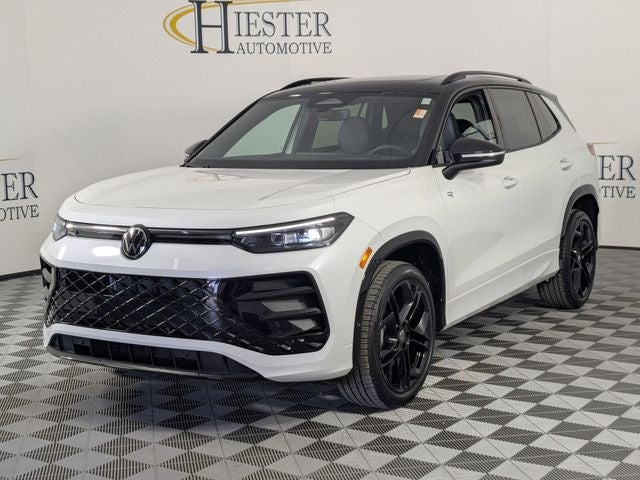 CLEAN CARFAX, ONE OWNER, LOCAL TRADE, BALANCE OF FACTORY WARRANTY, LIFETIME ENGINE GUARANTEE, AWD, FAST AND EASY FINANCING, THE NEW PRICE OUTLET, AWD, 4-Wheel Disc Brakes, 4-Wheel Independent Suspension, 7 Speakers, ABS brakes, Air Conditioning, Alloy wheels, AM/FM radio: SiriusXM with 360L, Auto High-beam Headlights, Auto-dimming Rear-View mirror, Automatic temperature control, Brake assist, Bumpers: body-color, Compass, Delay-off headlights, Driver door bin, Driver vanity mirror, Dual front impact airbags, Dual front side impact airbags, Electronic Stability Control, Emergency communication system, Exterior Parking Camera Rear, Four wheel independent suspension, Front anti-roll bar, Front Bucket Seats, Front Center Armrest, Front dual zone A/C, Front reading lights, Fully automatic headlights, Heads-Up Display, Heated door mirrors, Heated Front Seats, Heated front seats, Illuminated entry, Knee airbag, Leather Shift Knob, Leather steering wheel, Low tire pressure warning, Occupant sensing airbag, Outside temperature display, Overhead airbag, Overhead console, Panic alarm, Passenger door bin, Passenger vanity mirror, Perforated V-Tex Leatherette Seating Surfaces, Power door mirrors, Power driver seat, Power Liftgate, Power moonroof: Panoramic, Power steering, Power windows, Radio data system, Radio: MIB4 Composition Media Touchscreen with AM/FM, Rain sensing wipers, Rear anti-roll bar, Rear reading lights, Rear seat center armrest, Rear side impact airbag, Rear window defroster, Rear window wiper, Remote keyless entry, Security system, Speed control, Speed-sensing steering, Split folding rear seat, Spoiler, Sport steering wheel, Steering wheel mounted audio controls, Tachometer, Telescoping steering wheel, Tilt steering wheel, Traction control, Trip computer, Turn signal indicator mirrors, Variably intermittent wipers, Wheels: 20 Black Painted Alloy, AWD. White 2026 Volkswagen Tiguan 2.0T SE R-Line Black AWD 8-Speed Automatic 2.0L TSI DOHC Odometer is 2666 miles below market average!